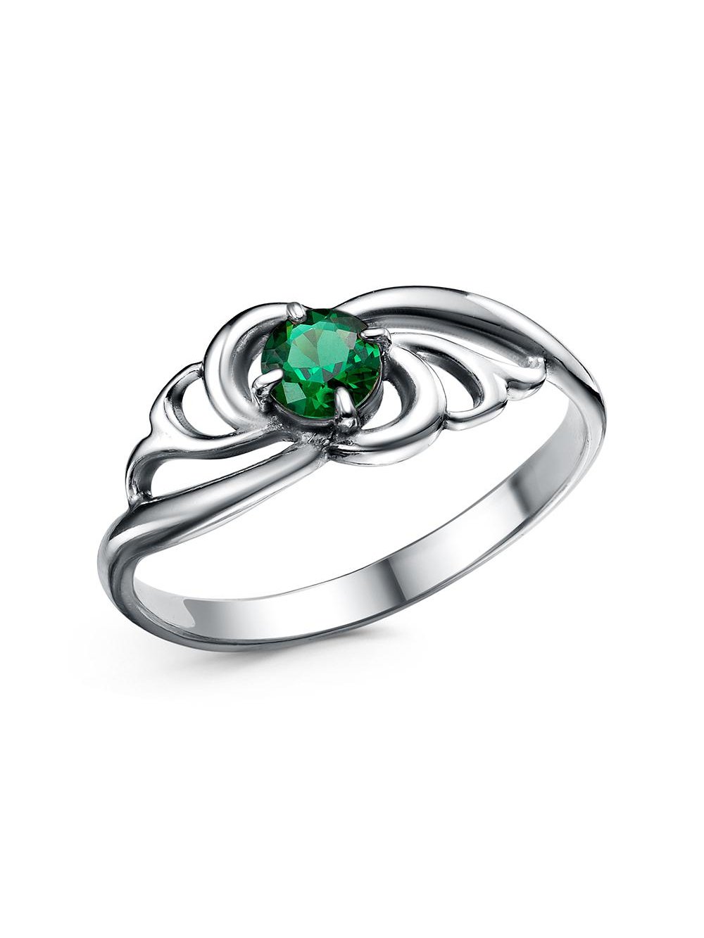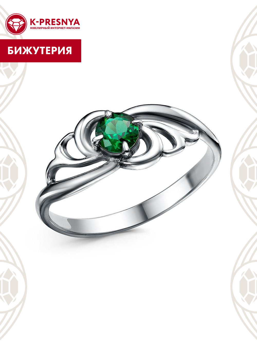 Кольцо бижутерия, покрытие - серебрение с оксидированием, вставка - искусственная шпинель
