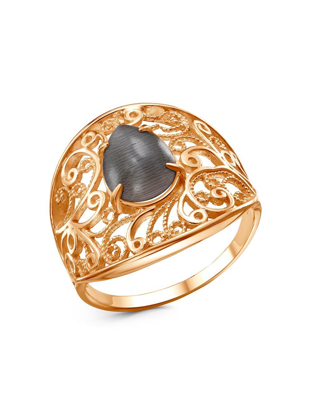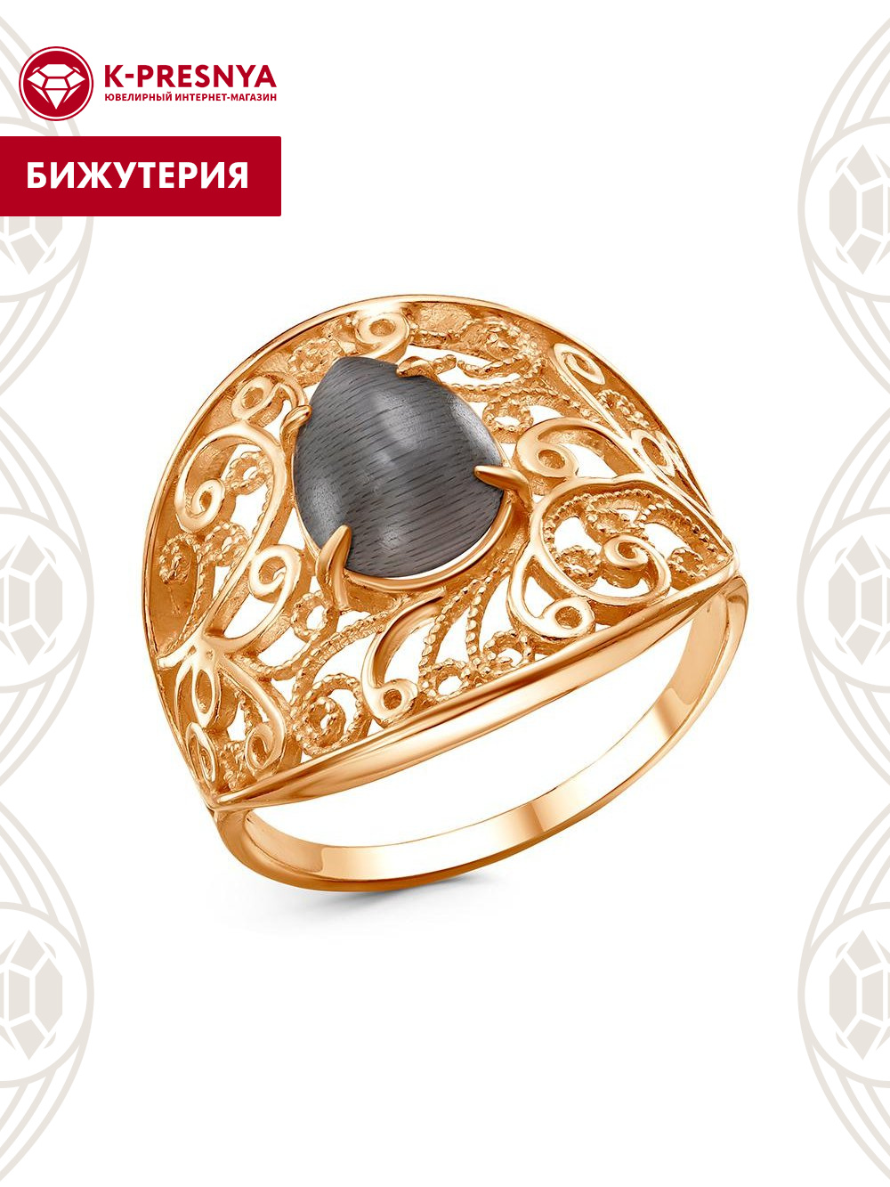 Кольцо бижутерия, покрытие - золочение, вставка - искусственный кошачий глаз