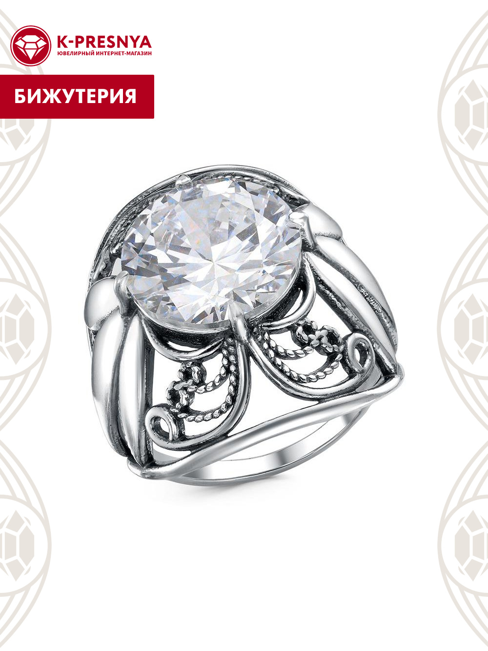 Кольцо бижутерия, покрытие - серебрение с оксидированием, вставка - фианит (недрагоценный камень)