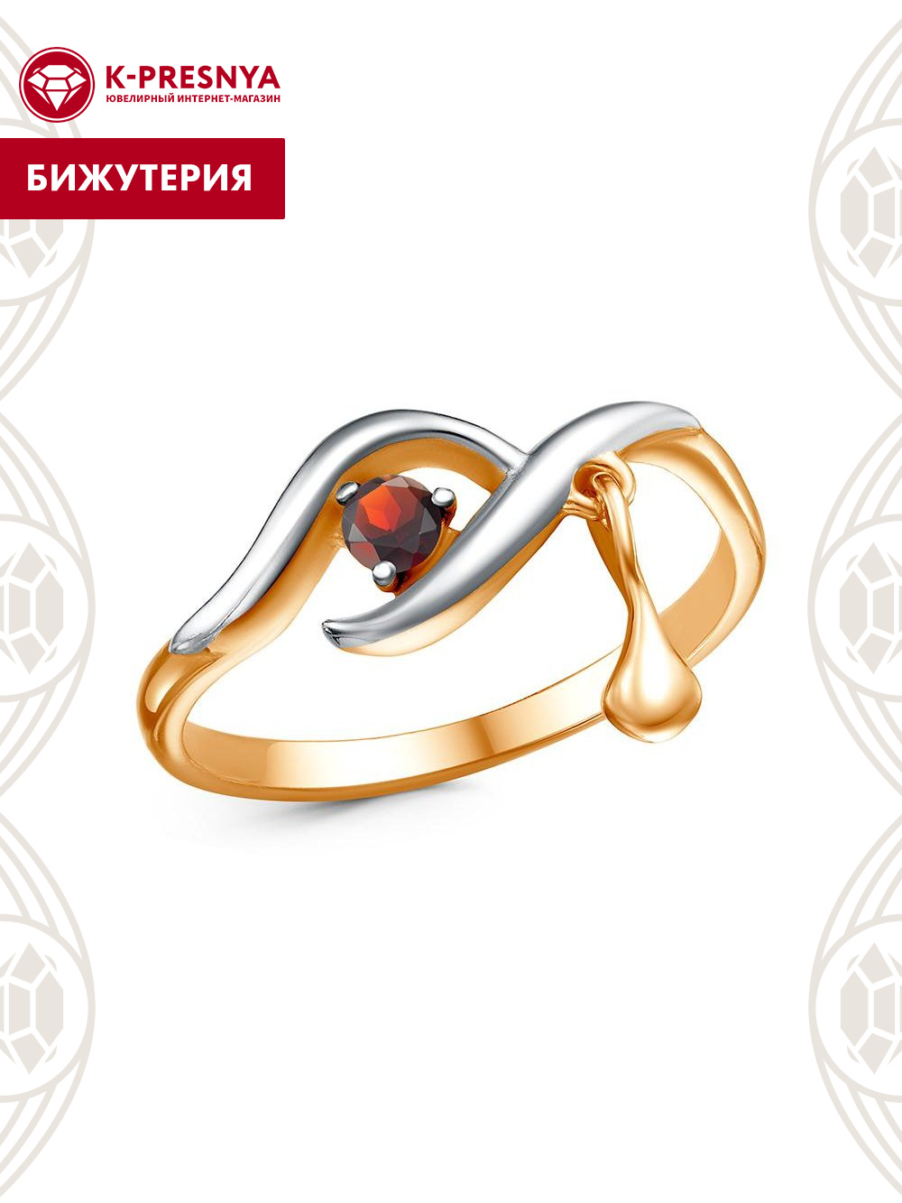 Кольцо бижутерия, покрытие - золочение, выборочное родирование, вставка - фианит (недрагоценный камень)