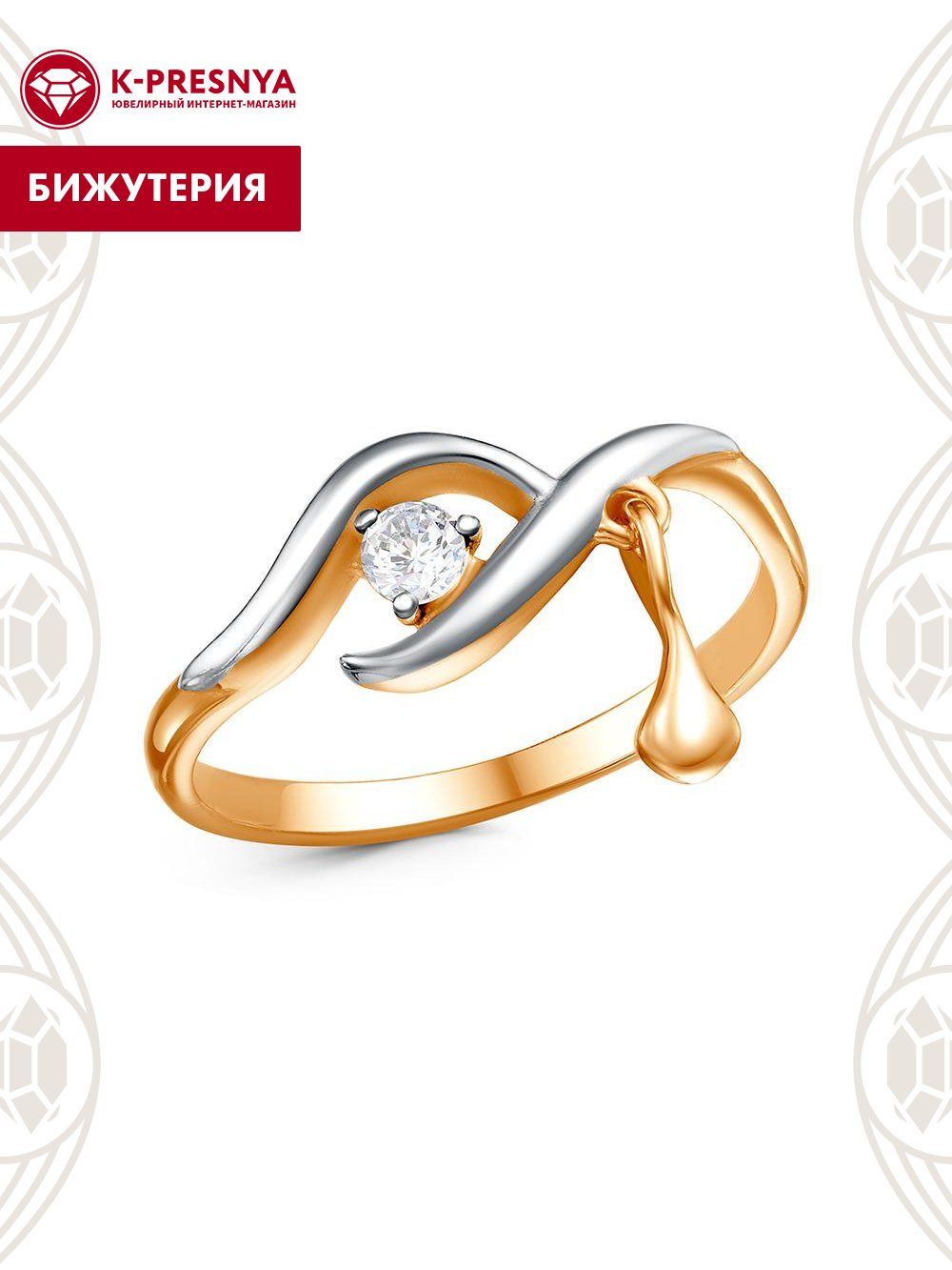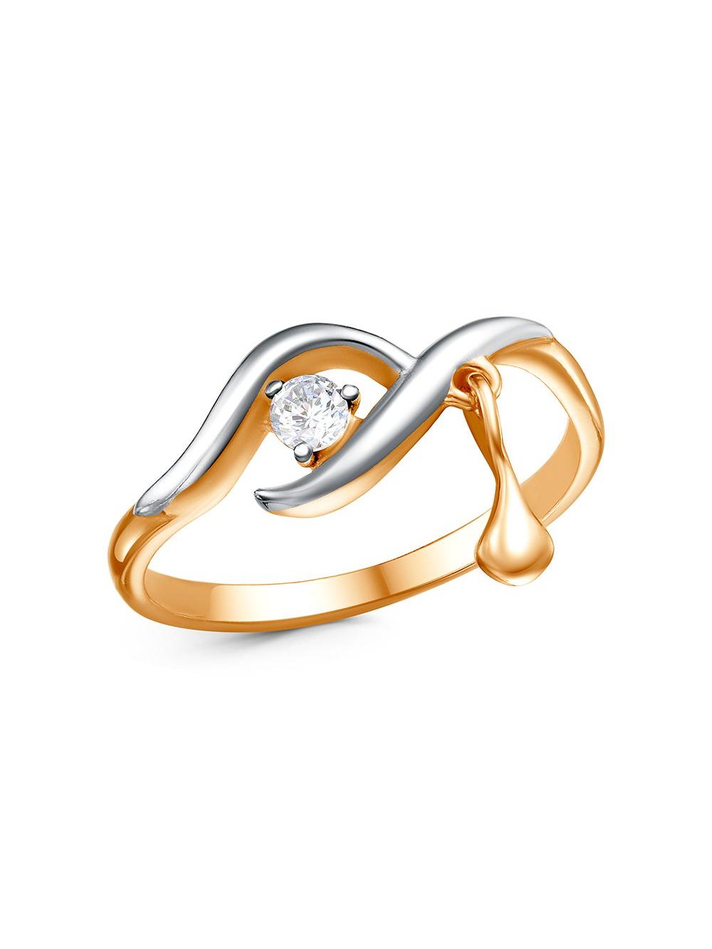 Кольцо бижутерия, покрытие - золочение, выборочное родирование, вставка - фианит (недрагоценный камень)