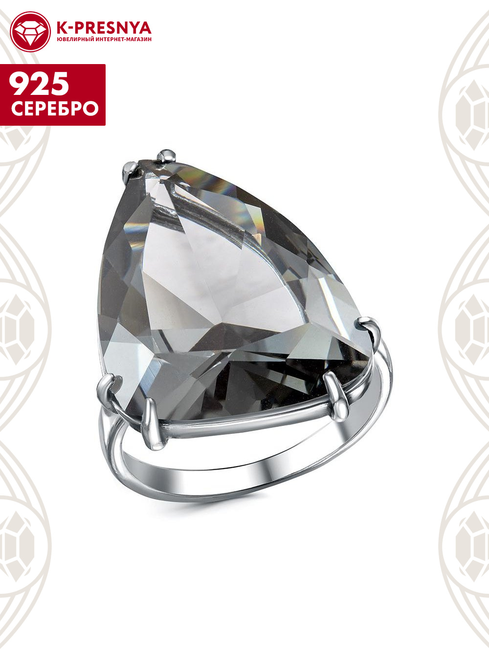 Кольцо серебро 925 пробы, покрытие - оксидирование, вставка - дымчатый кварц (искусственный)