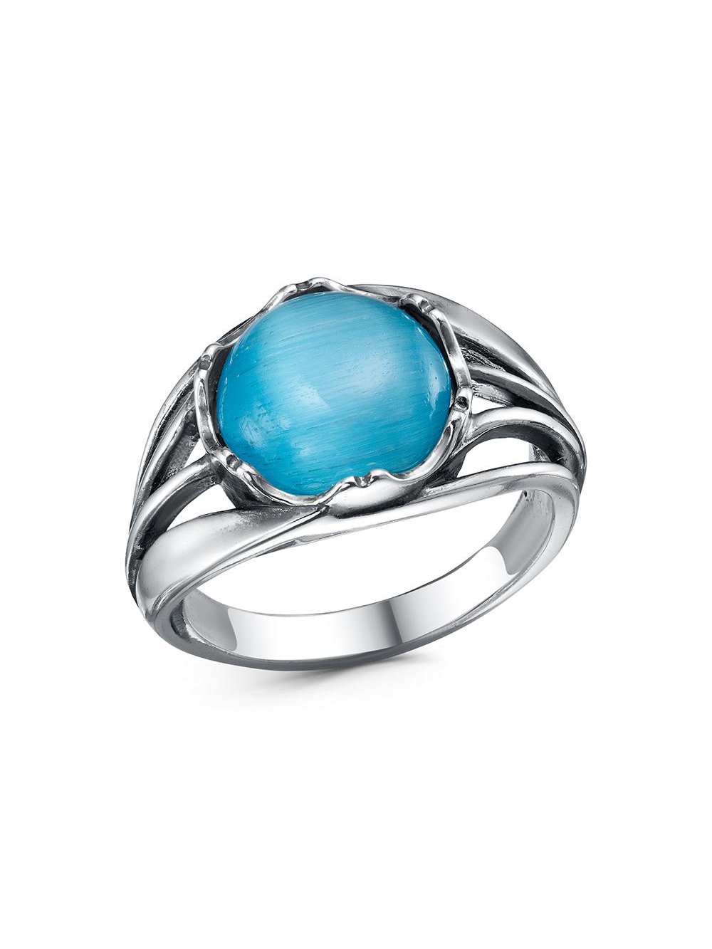 Кольцо серебро 925 пробы, покрытие - оксидирование, вставка - искусственный кошачий глаз