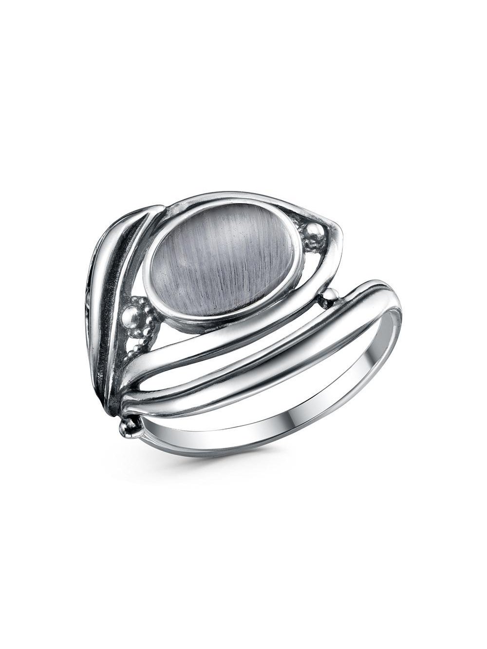 Кольцо серебро 925 пробы, покрытие - оксидирование, вставка - искусственный кошачий глаз