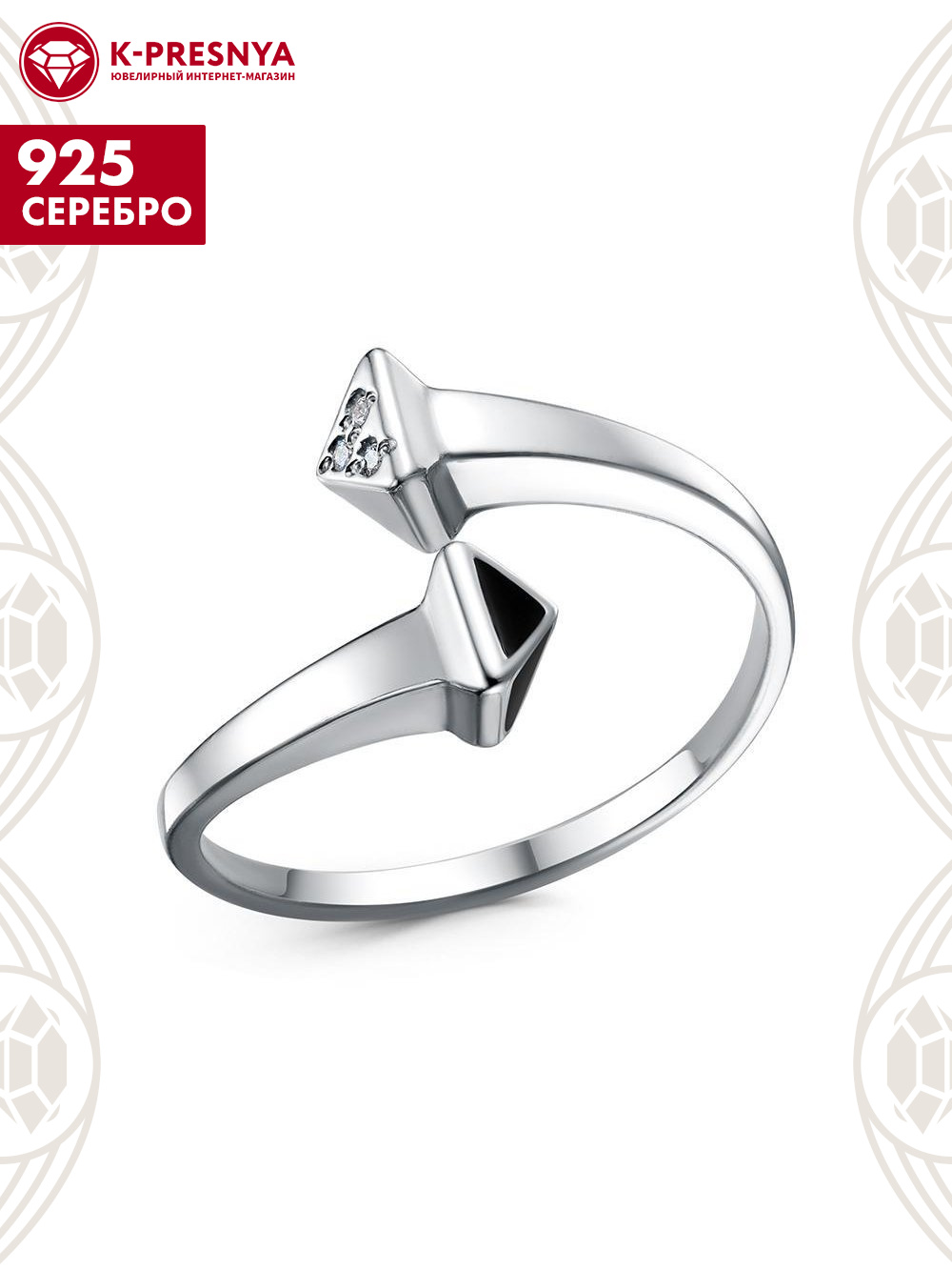 Кольцо серебро 925 пробы, покрытие - родирование, отделка - эмаль, вставка - фианит (недрагоценный камень)