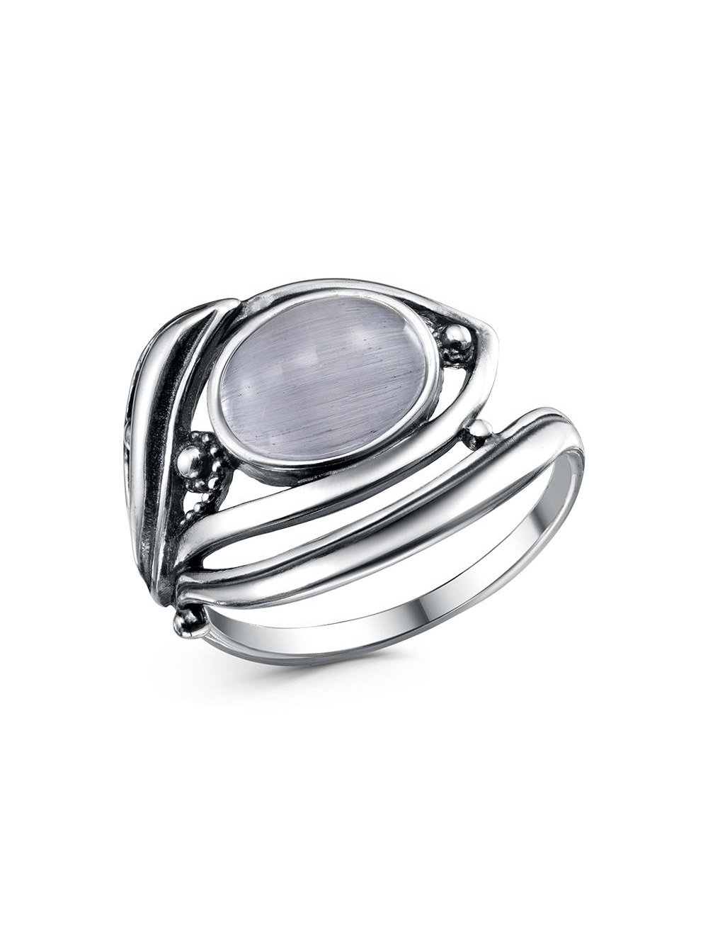 Кольцо бижутерия, покрытие - серебрение с оксидированием, вставка - искусственный кошачий глаз
