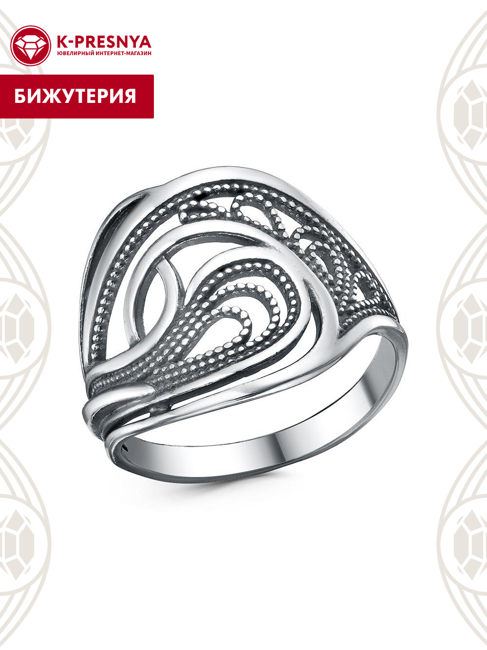 -Кольцо бижутерия, покрытие - серебрение с оксидированием, без вставок