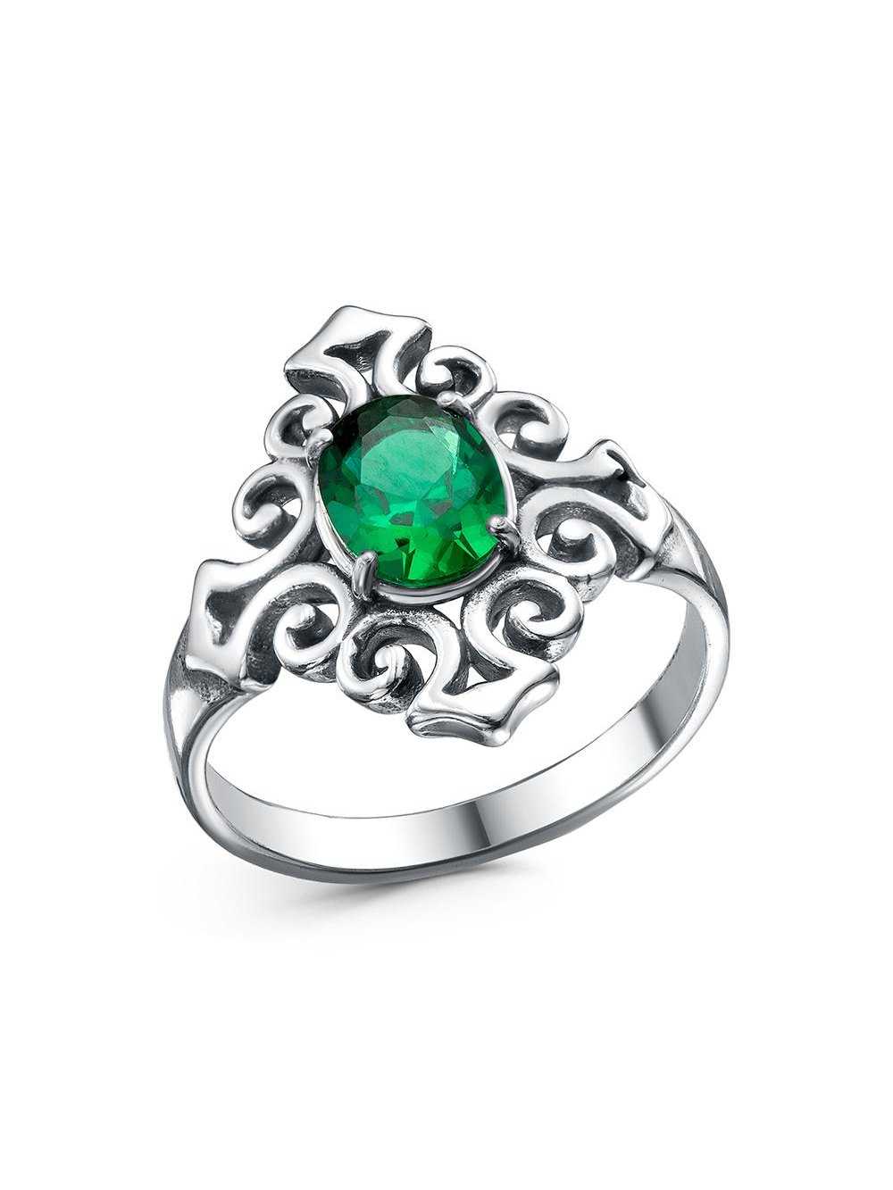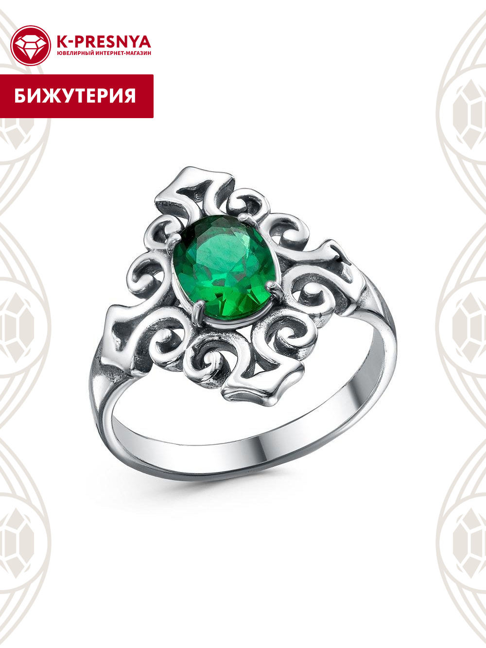 Кольцо бижутерия, покрытие - серебрение с оксидированием, вставка - искусственная шпинель