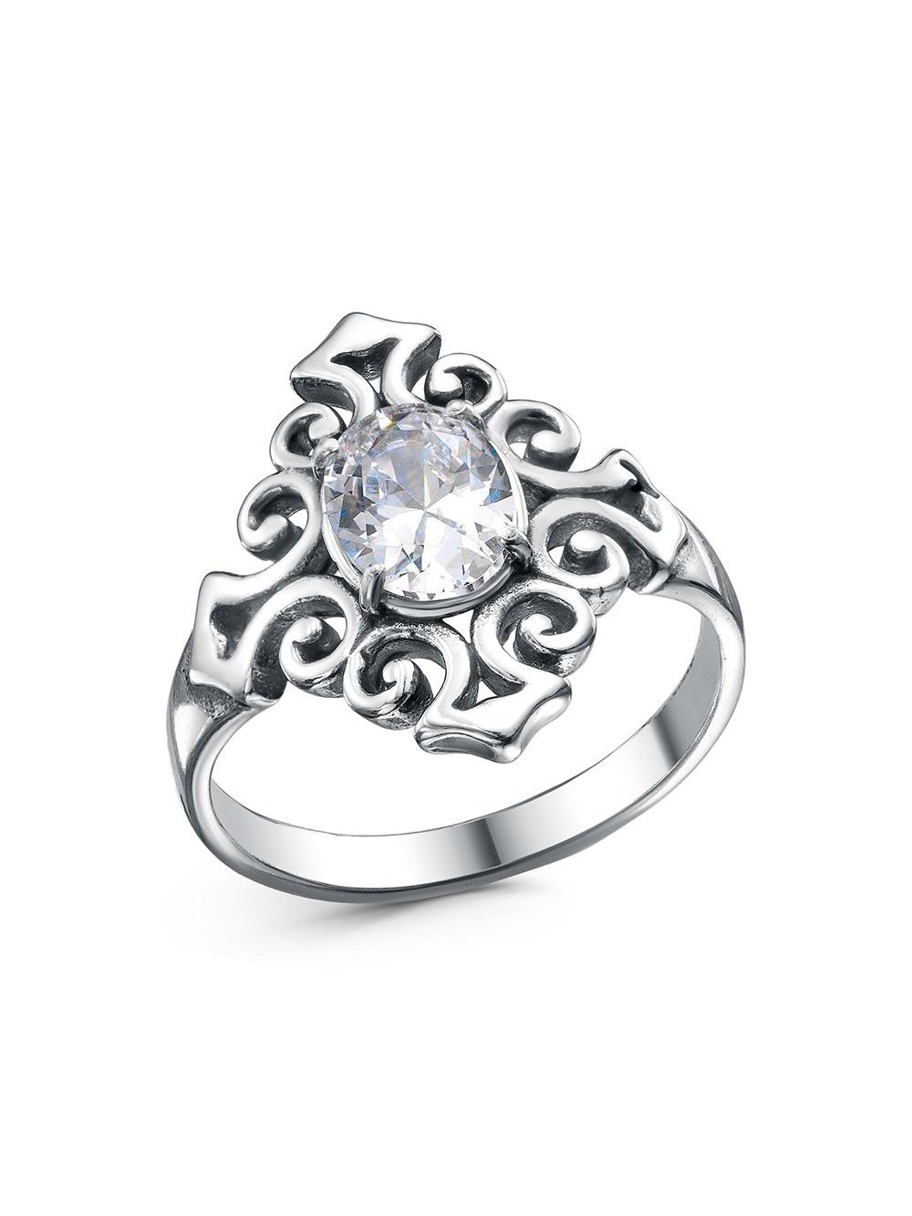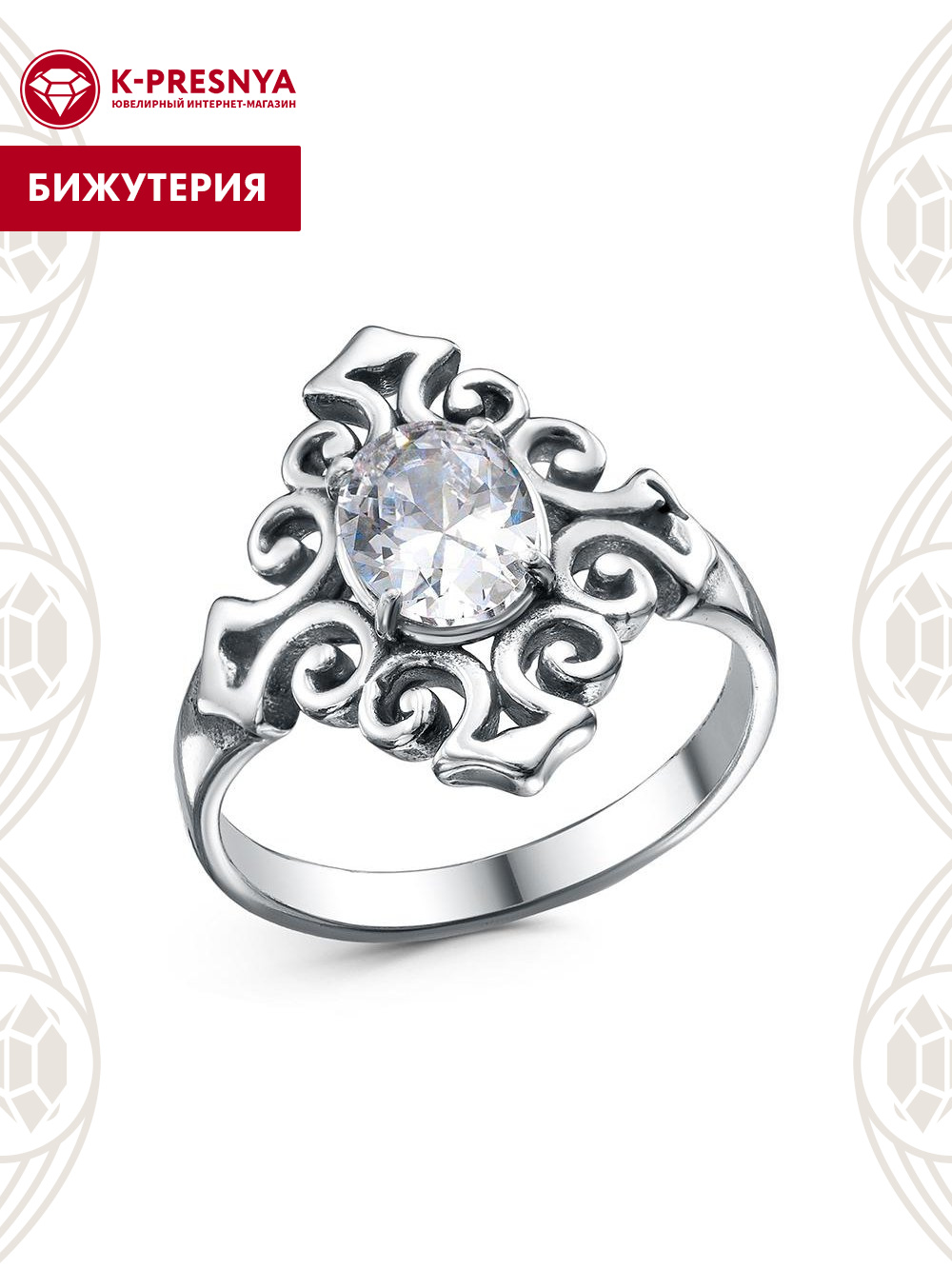 Кольцо бижутерия, покрытие - серебрение с оксидированием, вставка - фианит (недрагоценный камень)