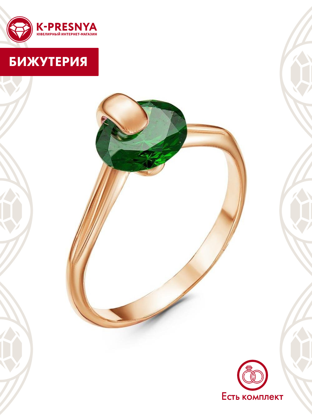 Кольцо бижутерия, покрытие - золочение, вставка - фианит (недрагоценный камень)