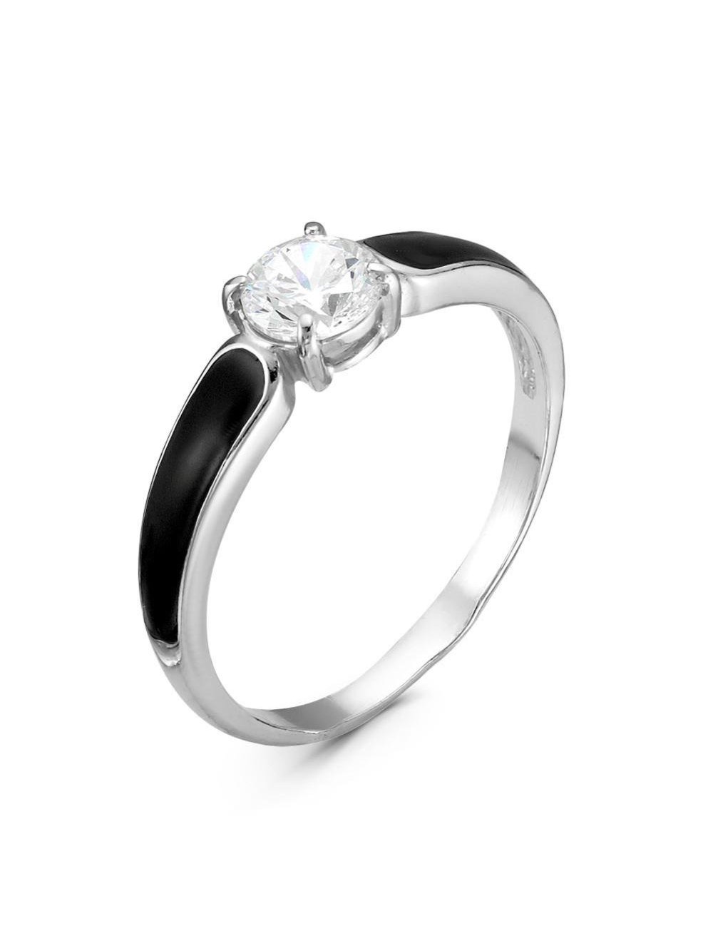 Кольцо серебро 925 пробы, покрытие - родирование, отделка - эмаль, вставка - фианит (недрагоценный камень)