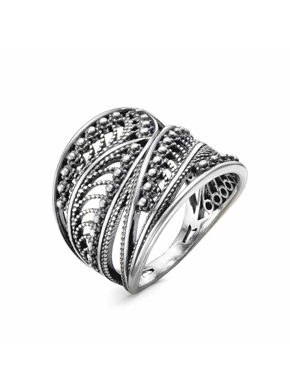Кольцо бижутерия, покрытие - серебрение с оксидированием, без вставок
