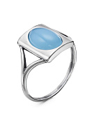 Кольцо бижутерия, покрытие - серебрение с оксидированием, вставка - искусственный агат голубой