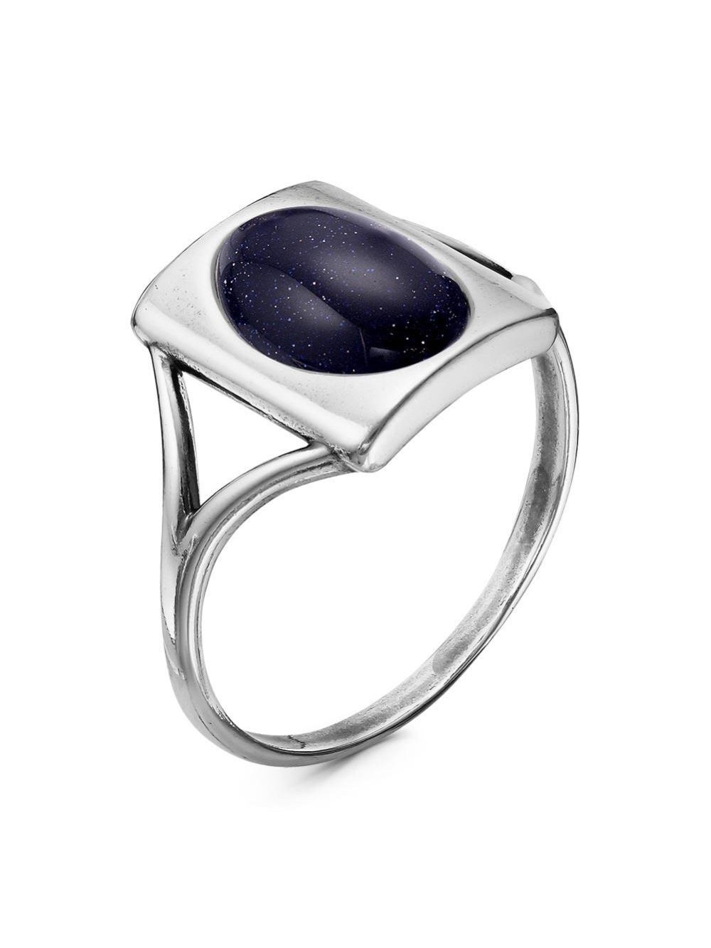 Кольцо бижутерия, покрытие - серебрение с оксидированием, вставка - искусственный авантюрин