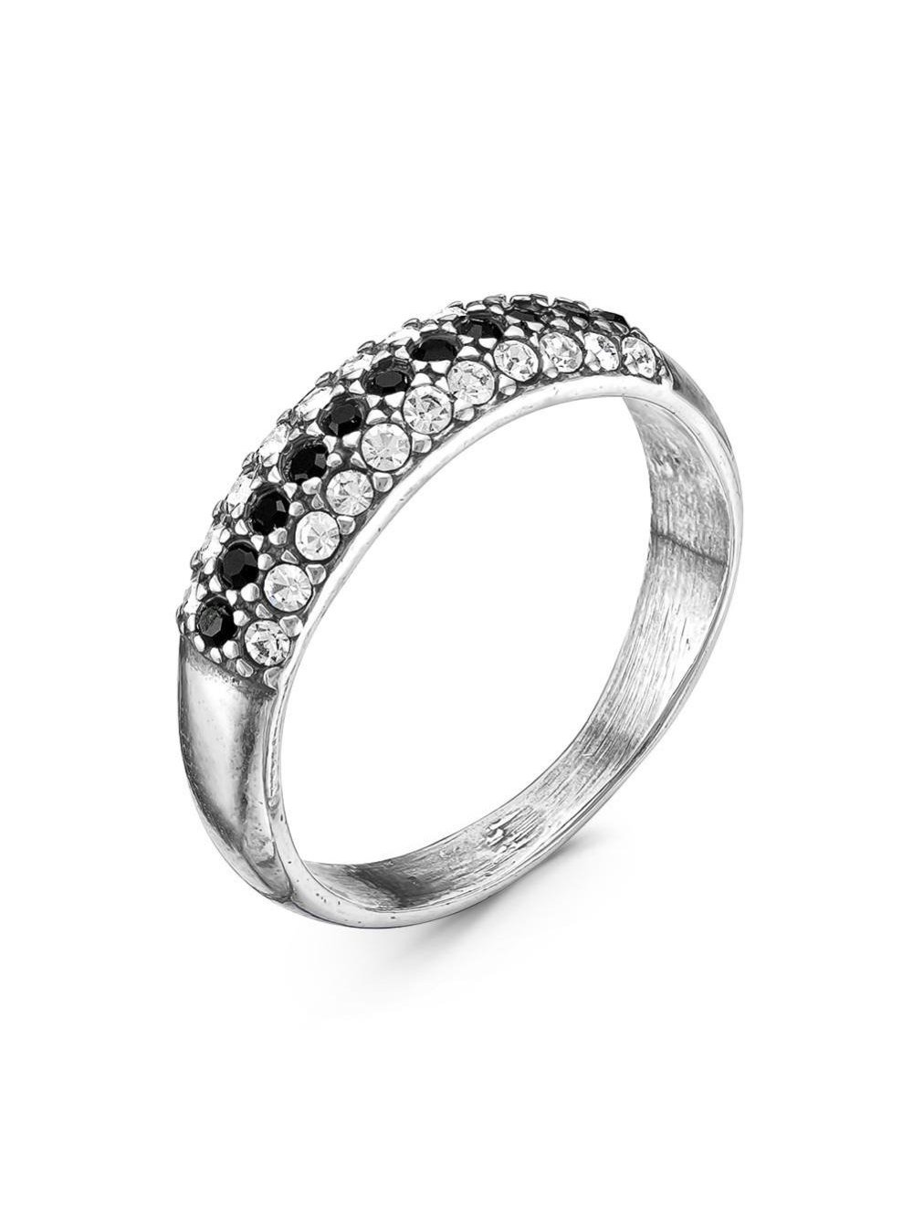 Кольцо бижутерия, покрытие - серебрение с оксидированием, вставка - стекло ювелирное preciosa