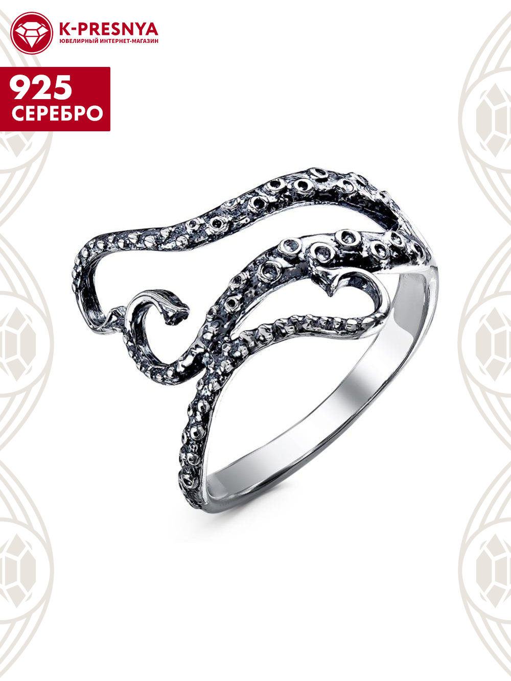 Кольцо серебро 925 пробы, покрытие - оксидирование, без вставок