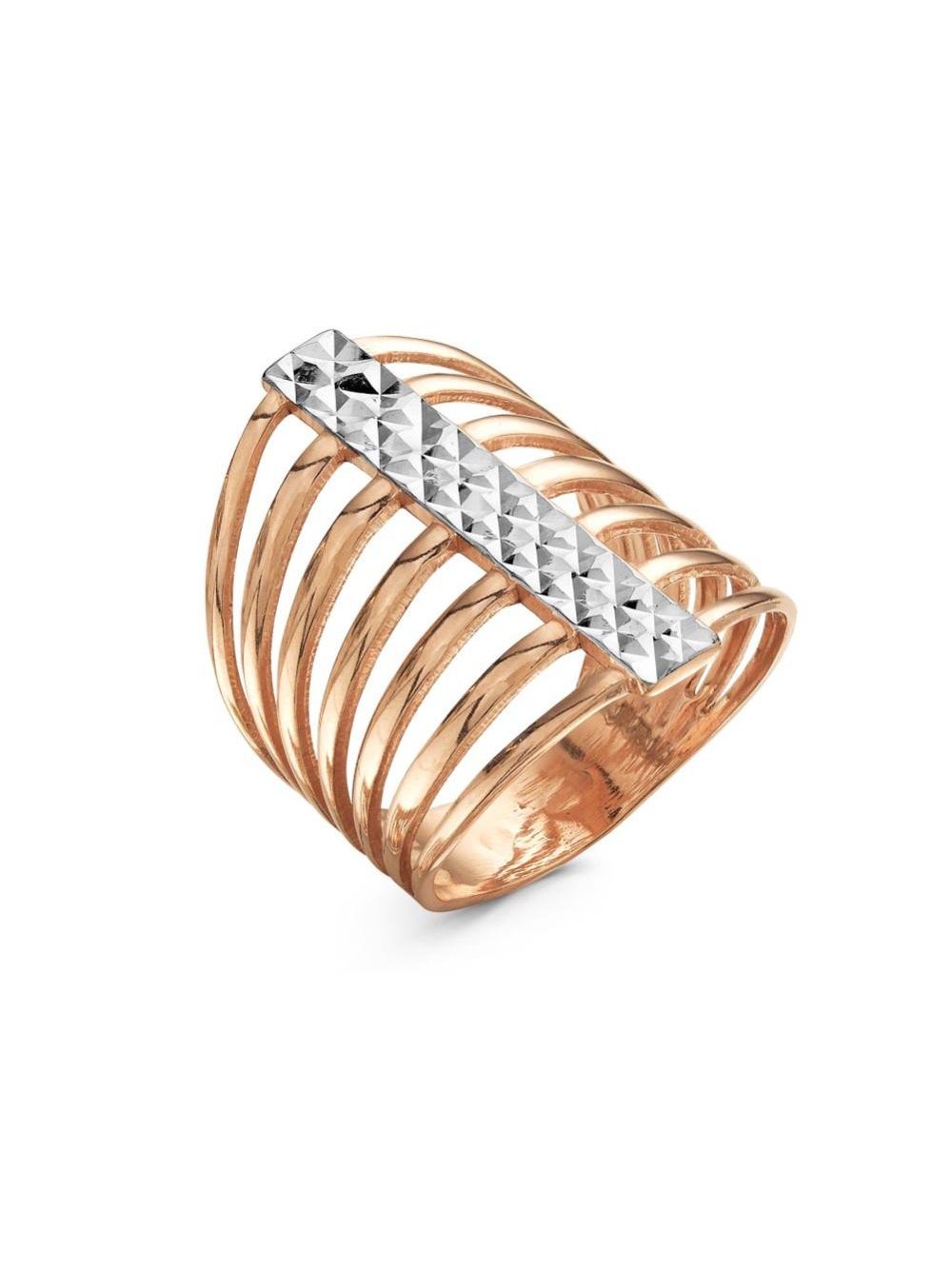 Кольцо серебро 925 пробы, покрытие - золочение, отделка - алмазная грань, без вставок
