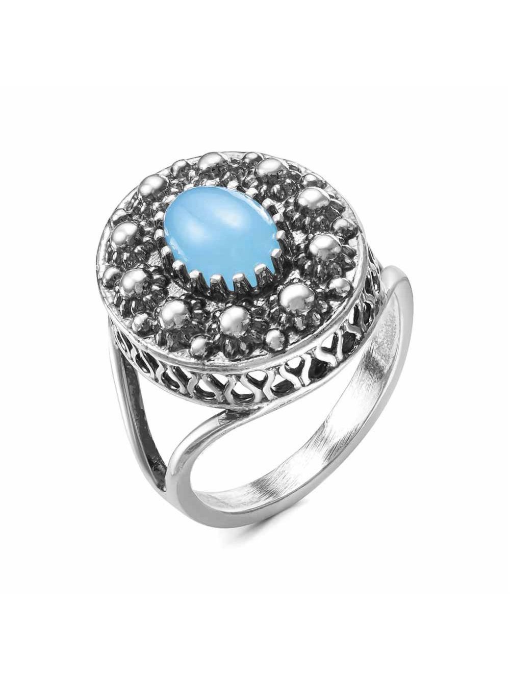Кольцо серебро 925 пробы, покрытие - оксидирование, вставка - искусственный агат голубой
