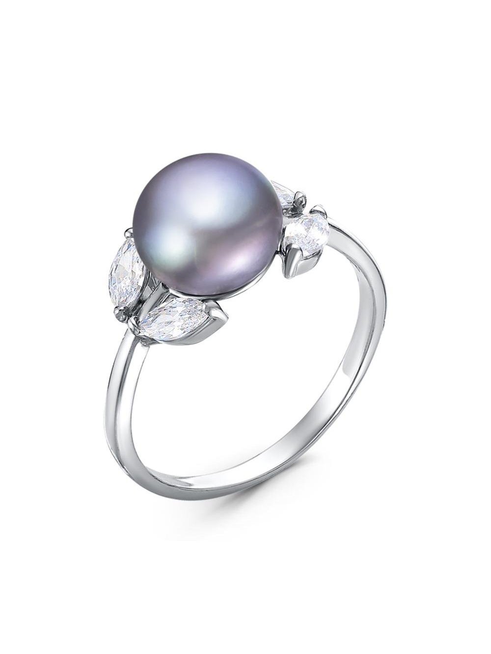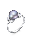 Кольцо серебро 925 пробы, покрытие - родирование, вставка - культивированный жемчуг, фианит (недрагоценный камень)