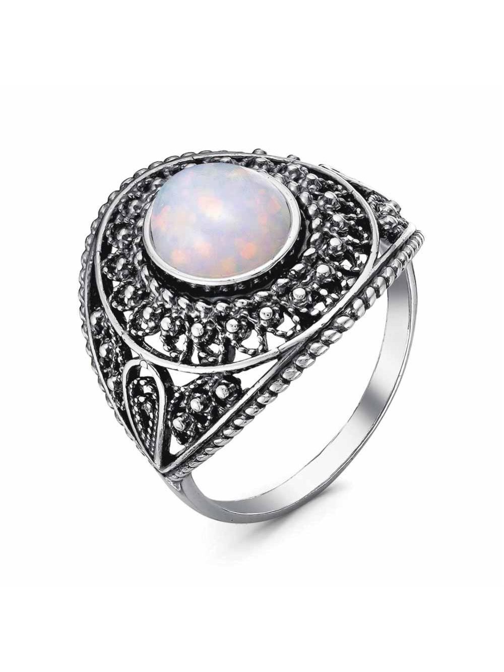 Кольцо серебро 925 пробы, покрытие - оксидирование, вставка - опал белый синтетический