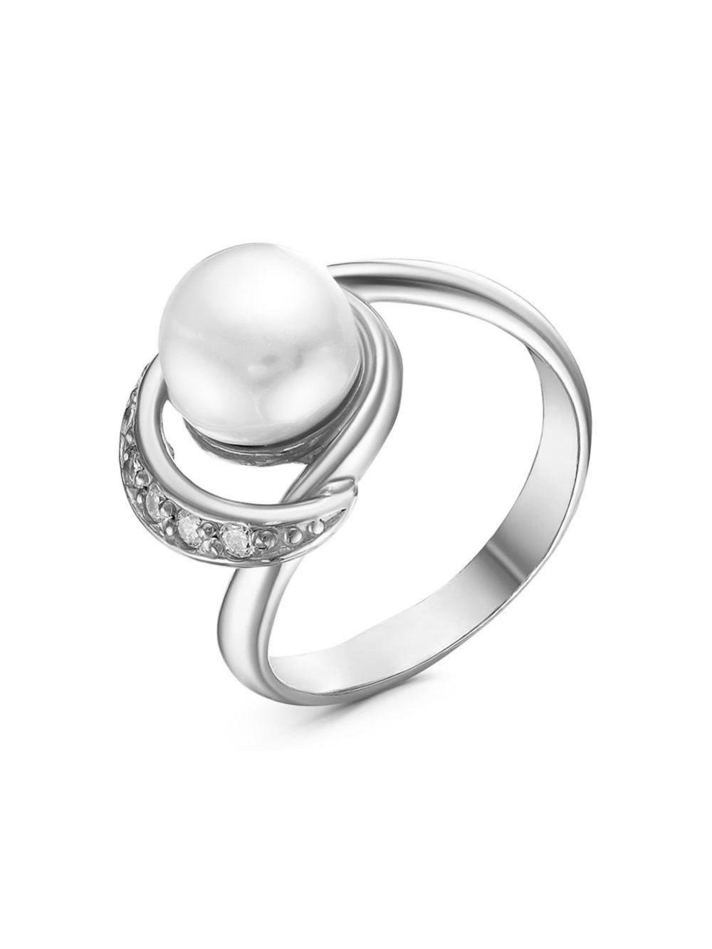 Кольцо серебро 925 пробы, покрытие - оксидирование, вставка - культивированный жемчуг, фианит (недрагоценный камень)