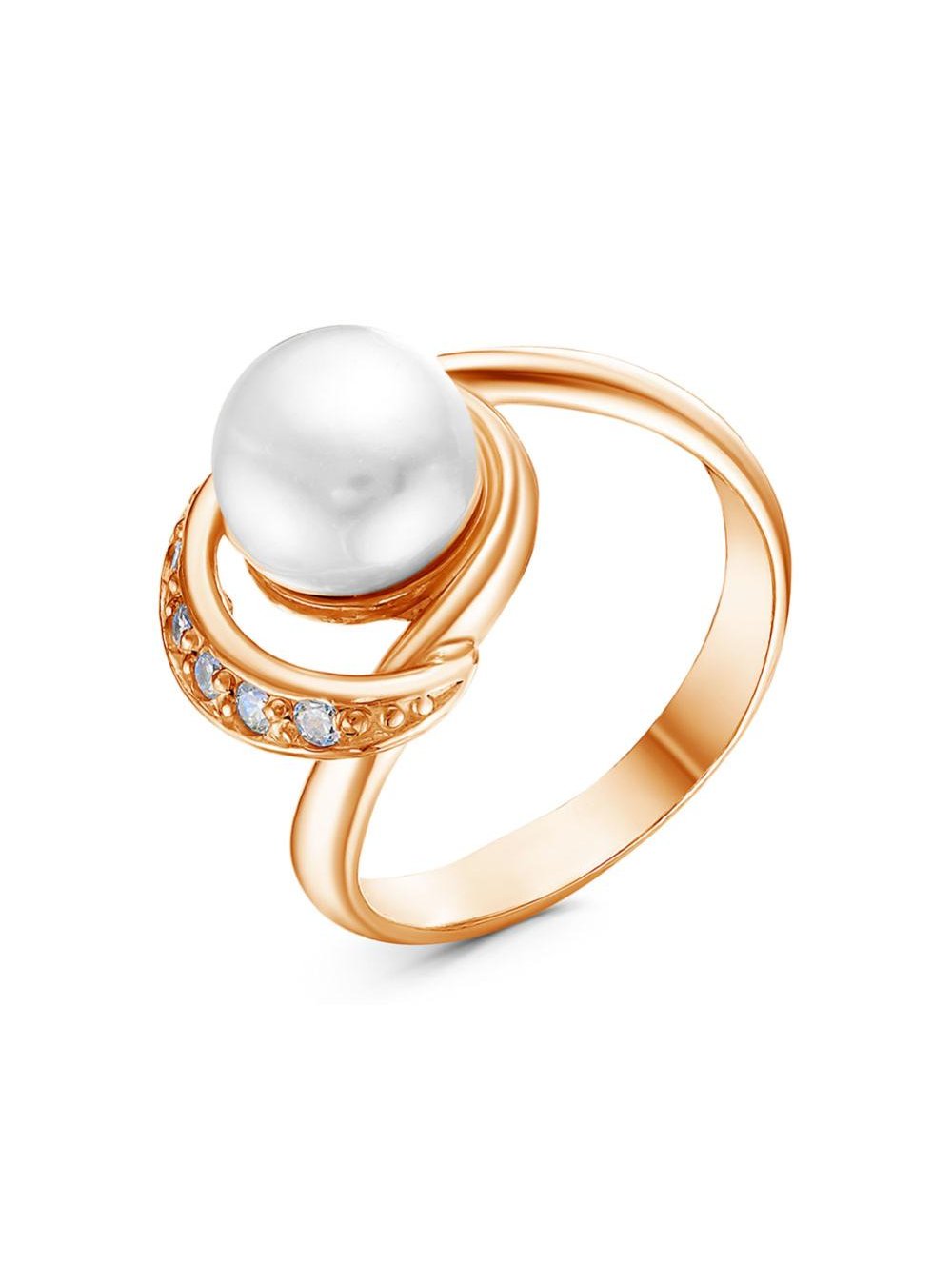 Кольцо серебро 925 пробы, покрытие - золочение, вставка - культивированный жемчуг, фианит (недрагоценный камень)