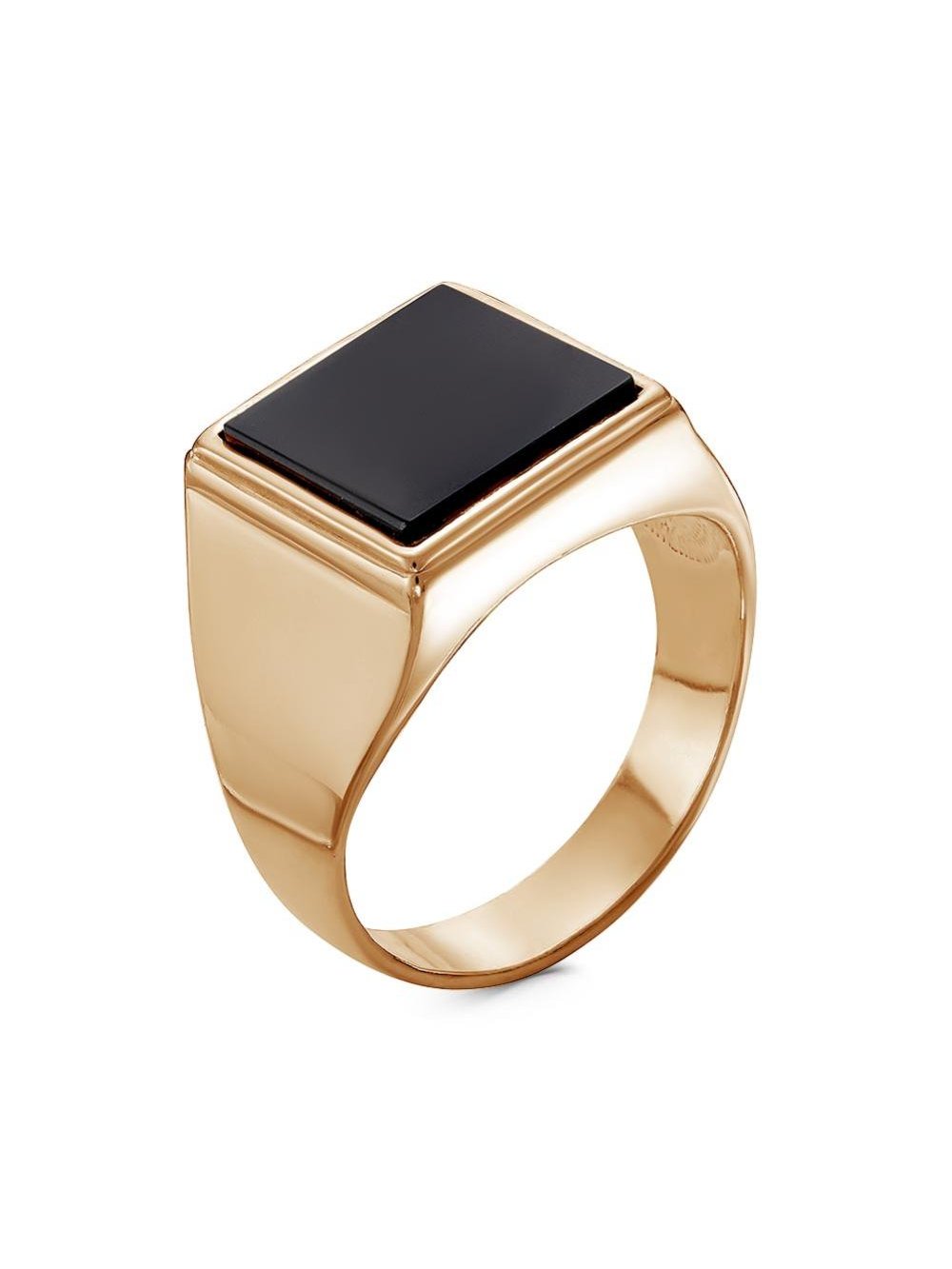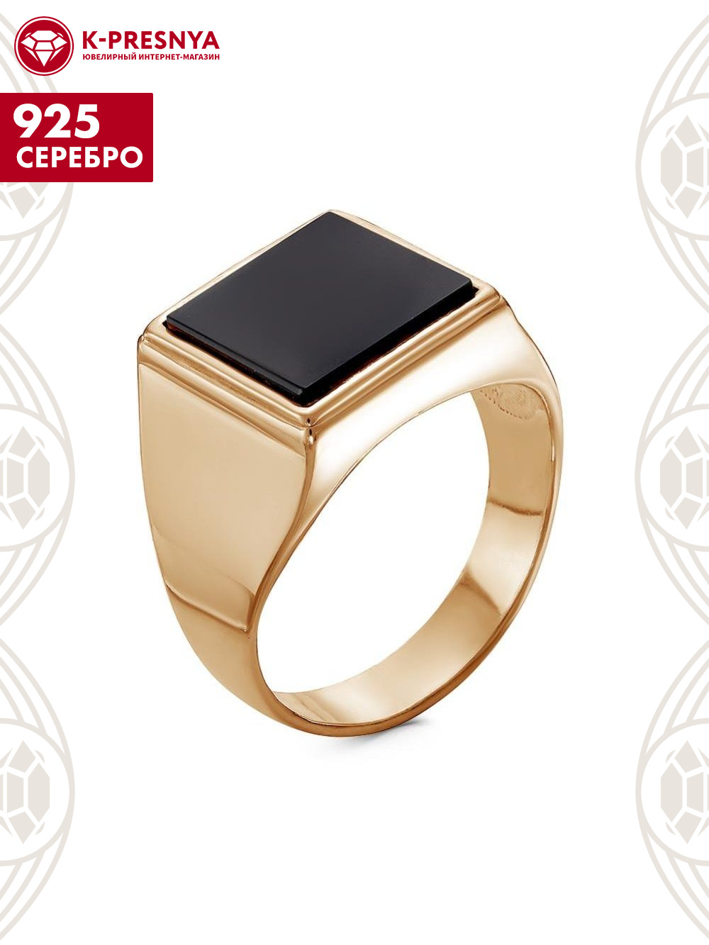 Кольцо серебро 925 пробы, покрытие - золочение, вставка - искусственный агат черный