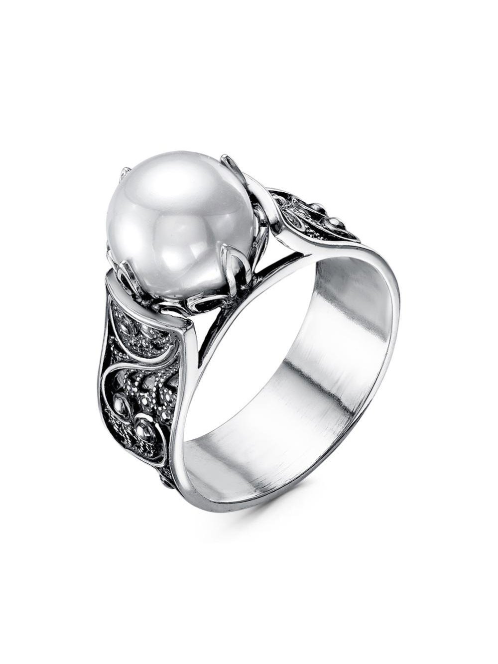 Кольцо серебро 925 пробы, покрытие - оксидирование, вставка - имитация жемчуга