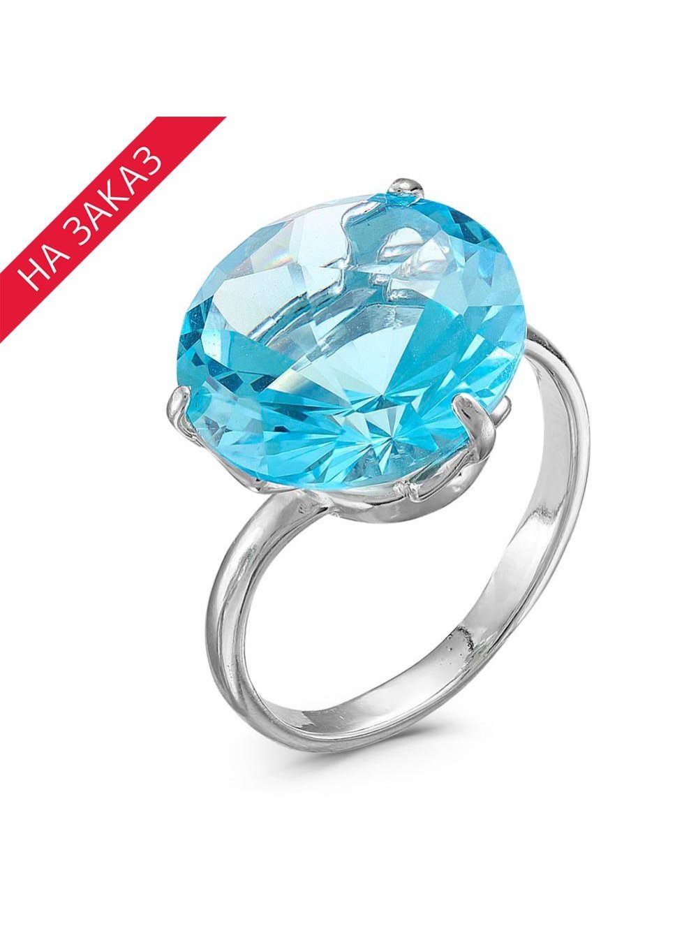 Кольцо серебро 925 пробы, покрытие - родирование, вставка - искусственный топаз голубой