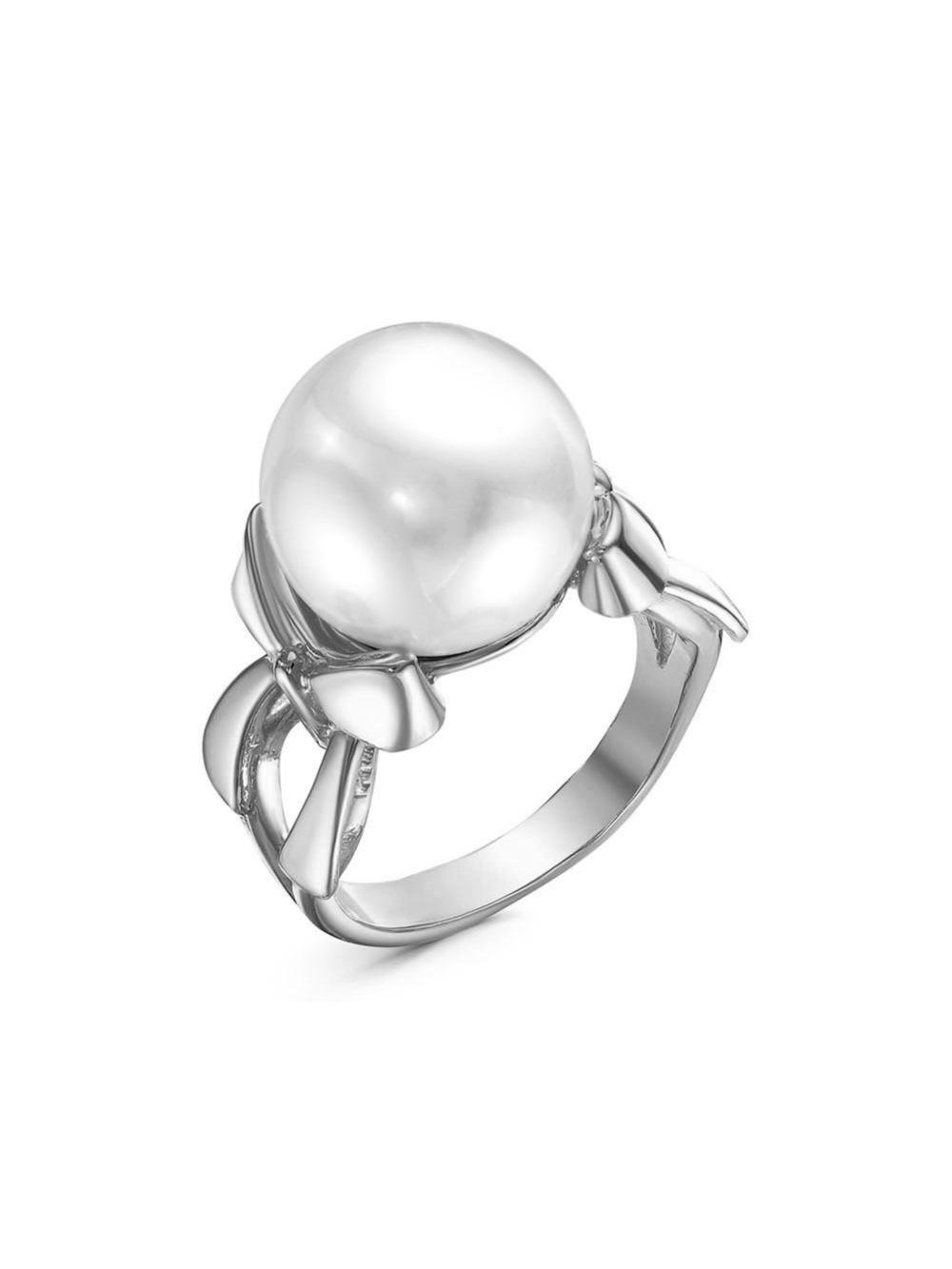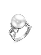 Кольцо серебро 925 пробы, покрытие - оксидирование, вставка - имитация жемчуга, фианит (недрагоценный камень)