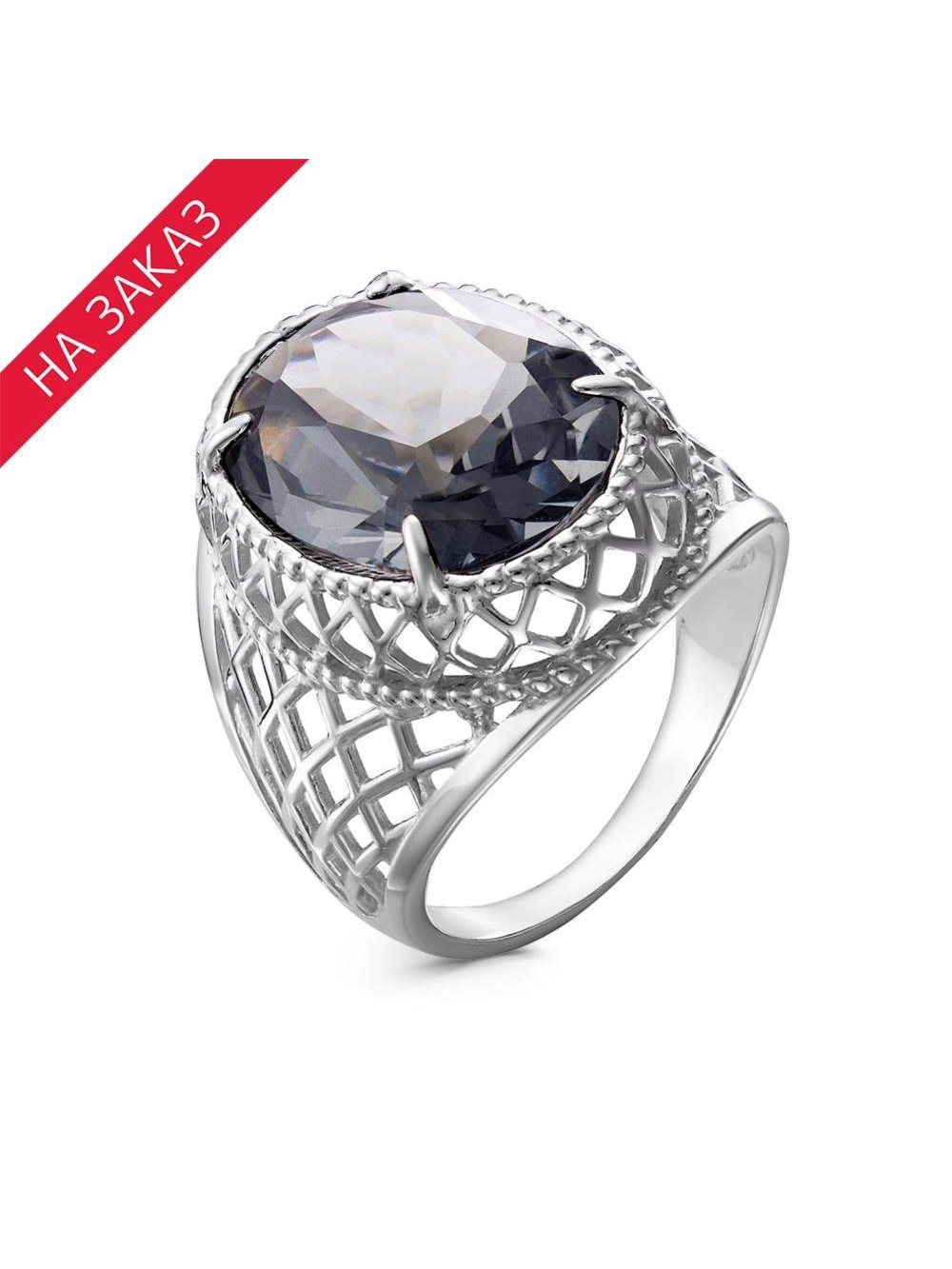 Кольцо серебро 925 пробы, покрытие - родирование, вставка - искусственный дымчатый кварц