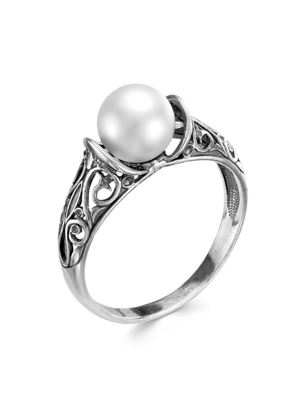 Кольцо серебро 925 пробы, покрытие - оксидирование, вставка - имитация жемчуга