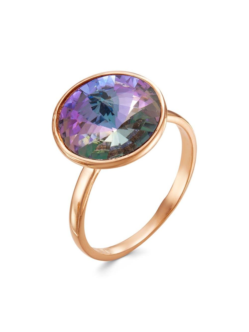 Кольцо серебро 925 пробы, покрытие - золочение, вставка - стекло ювелирное preciosa