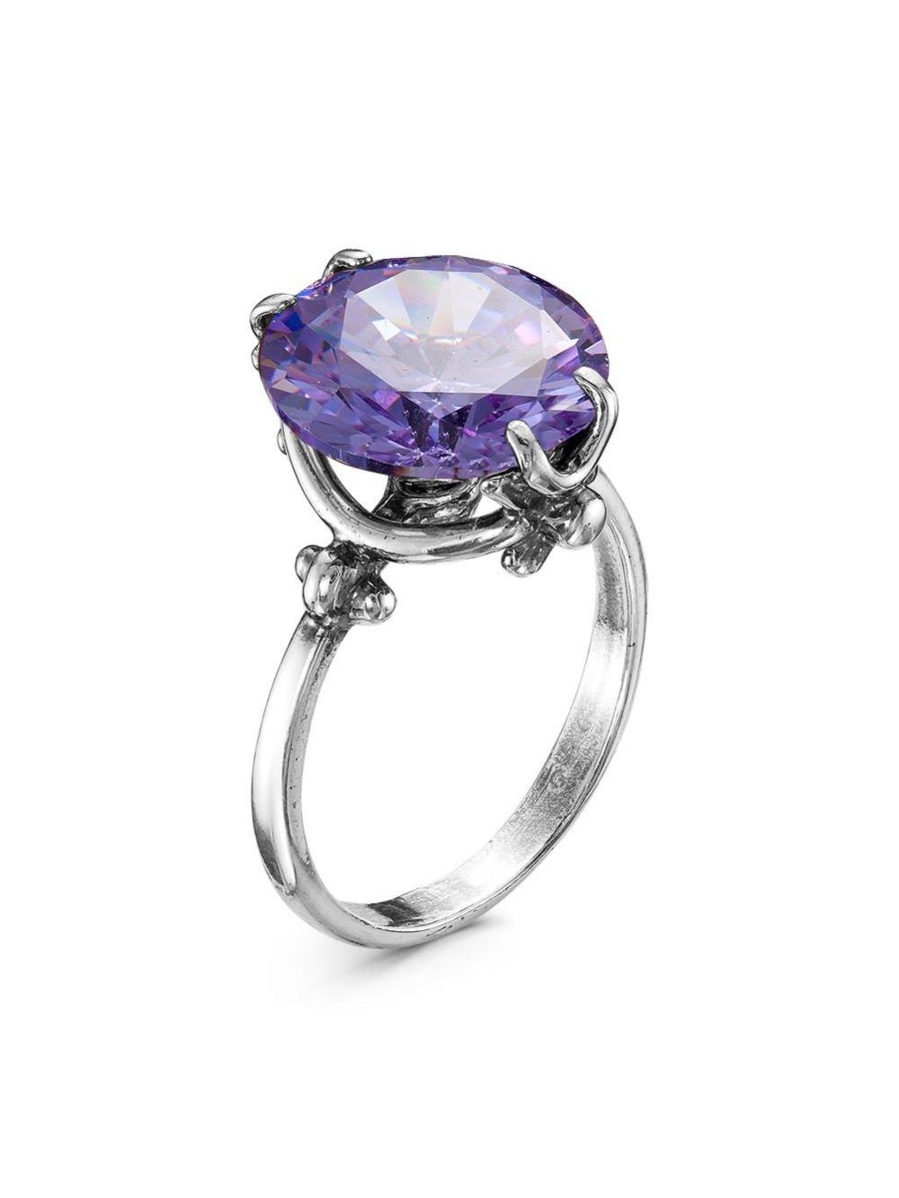 Кольцо бижутерия, покрытие - серебрение с оксидированием, вставка - фианит (недрагоценный камень)