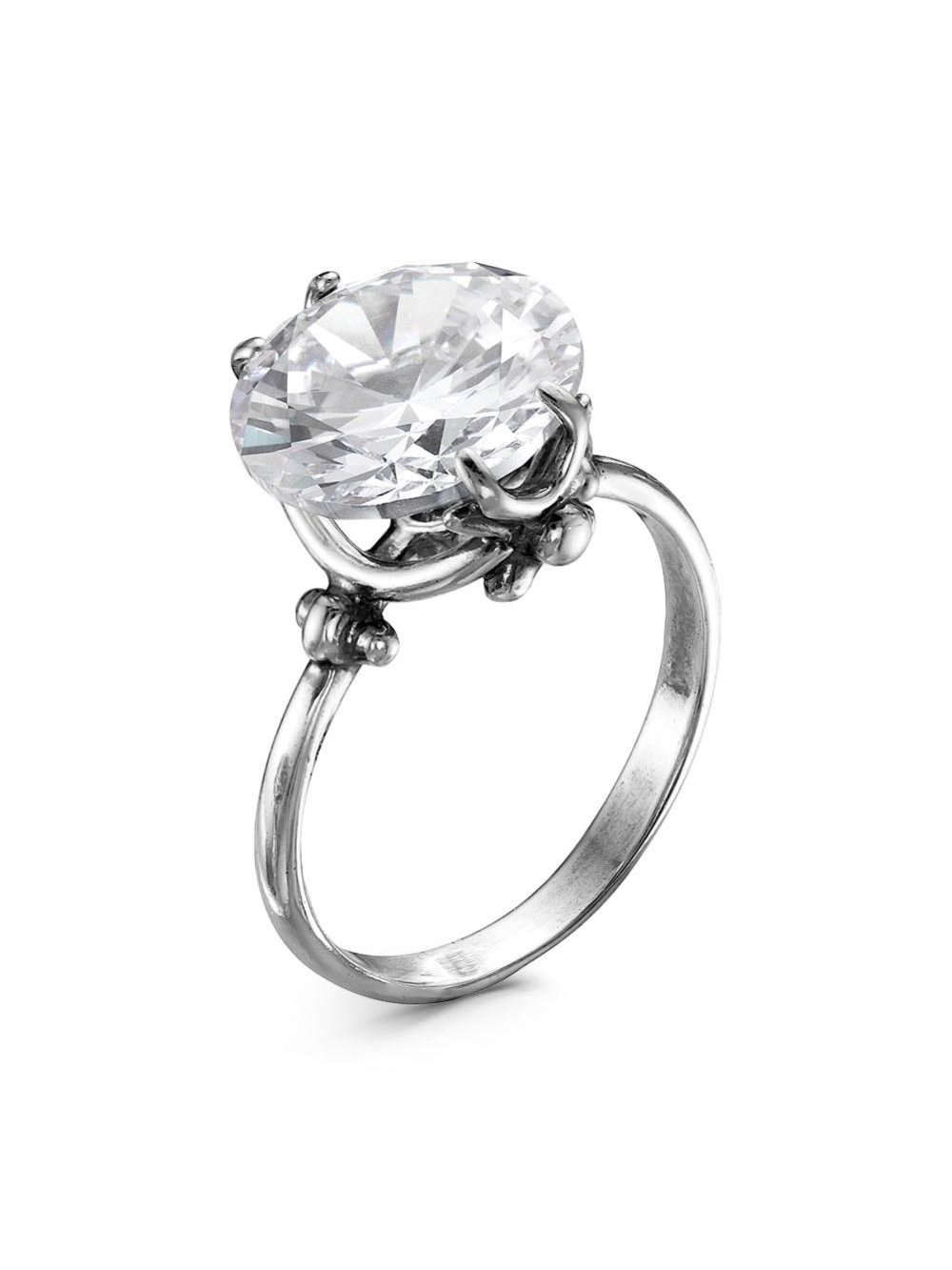 Кольцо бижутерия, покрытие - серебрение с оксидированием, вставка - фианит (недрагоценный камень)