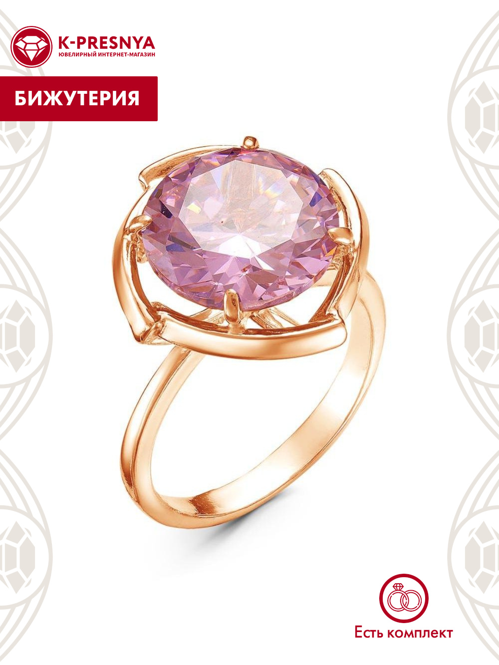 Кольцо бижутерия, покрытие - золочение, вставка - фианит (недрагоценный камень)