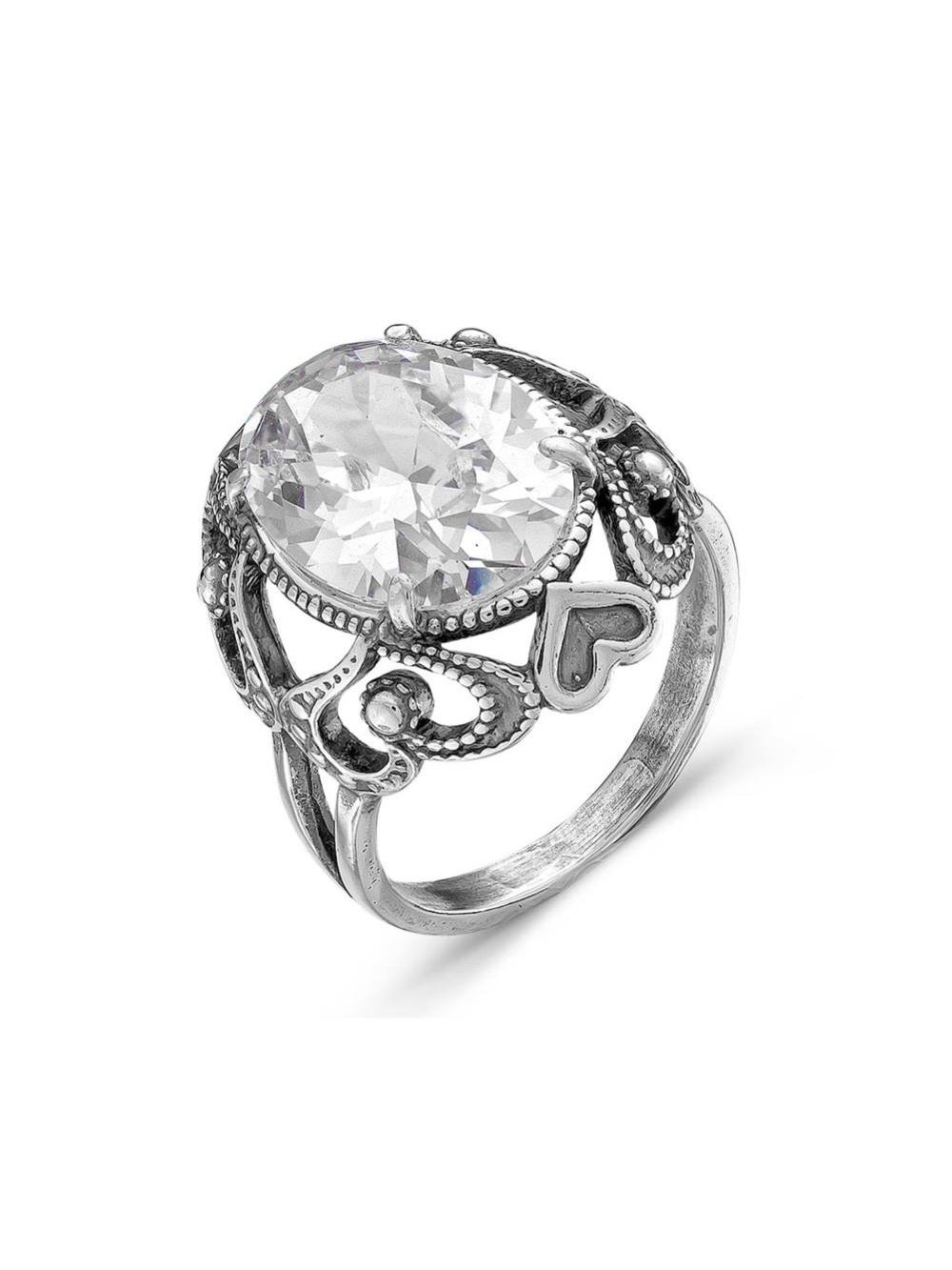 Кольцо серебро 925 пробы, покрытие - оксидирование, вставка - фианит (недрагоценный камень)