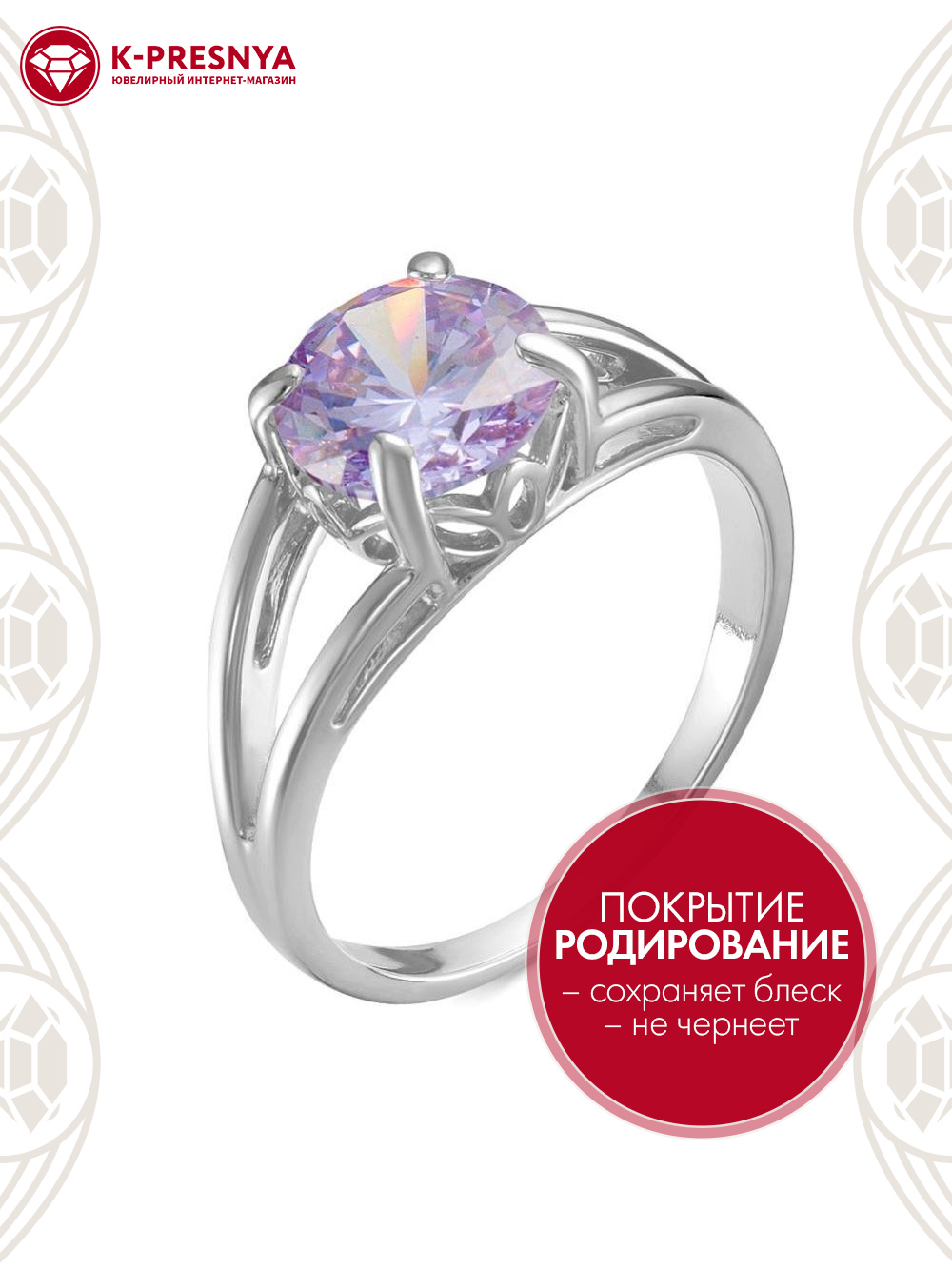 Кольцо серебро 925 пробы, покрытие - родирование, вставка - фианит (недрагоценный камень)
