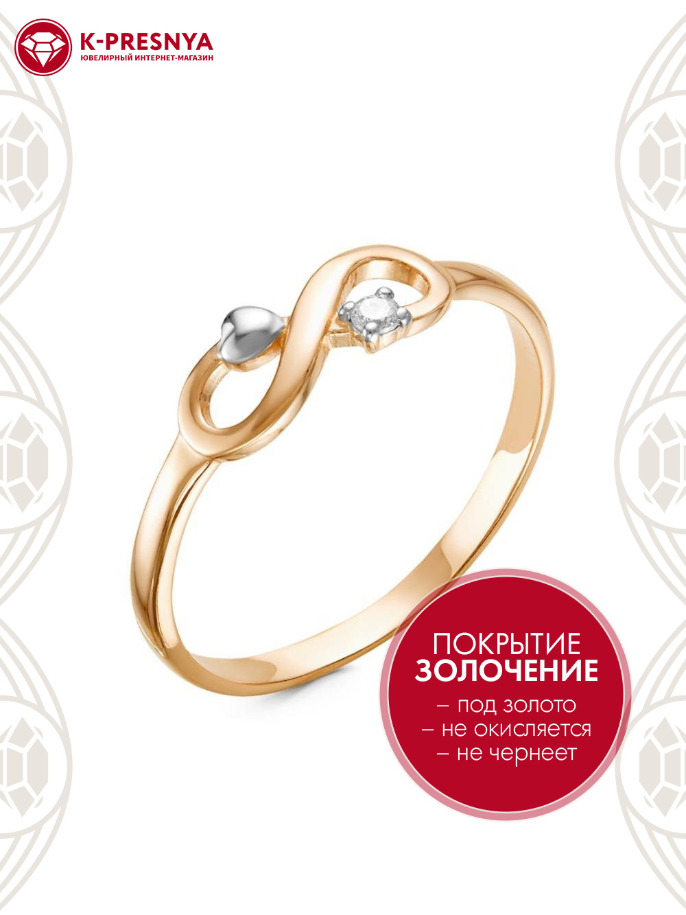 Кольцо серебро 925 пробы, покрытие - золочение, выборочное родирование, вставка - фианит (недрагоценный камень)