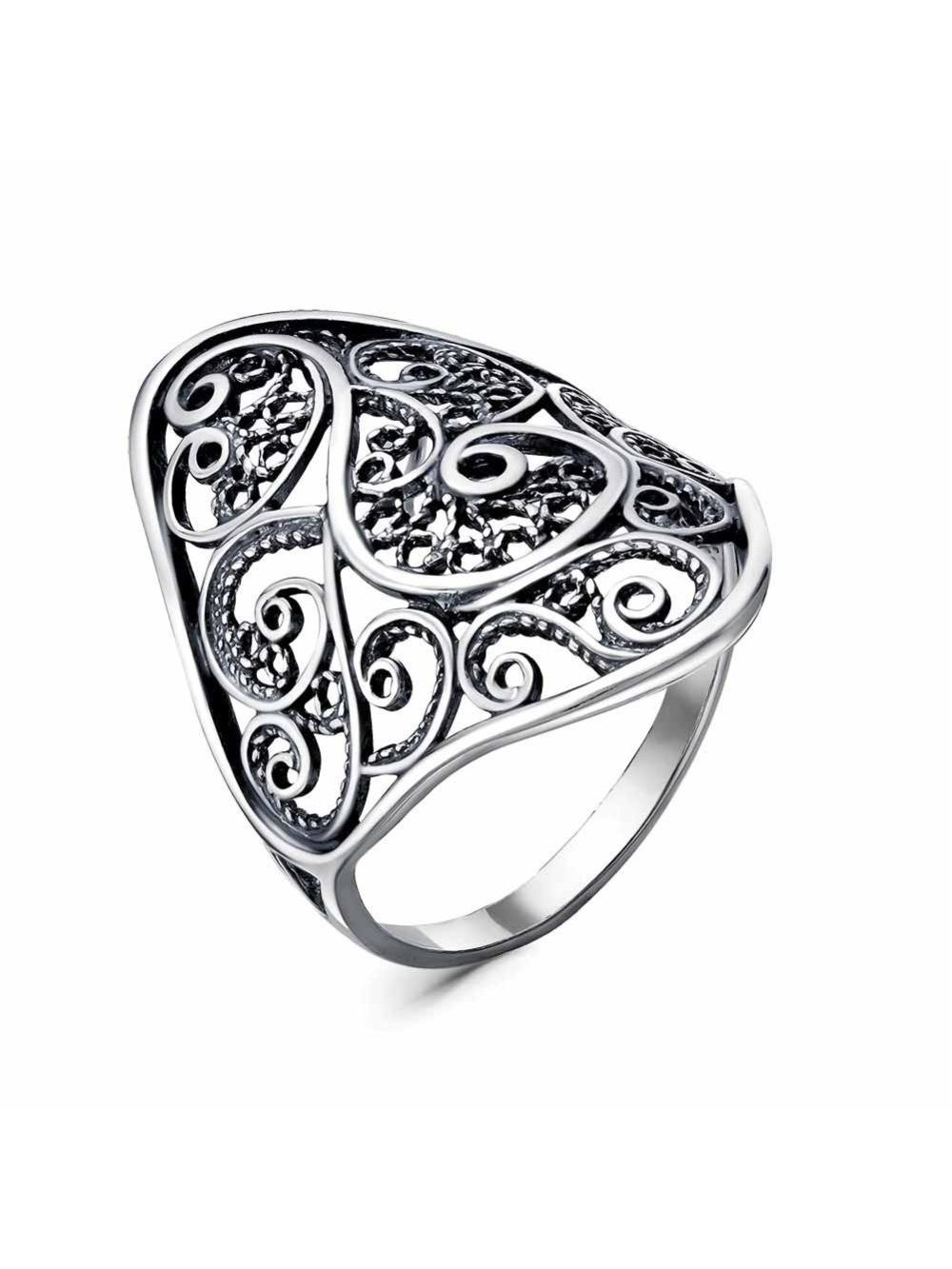 Кольцо бижутерия, покрытие - серебрение с оксидированием, без вставок