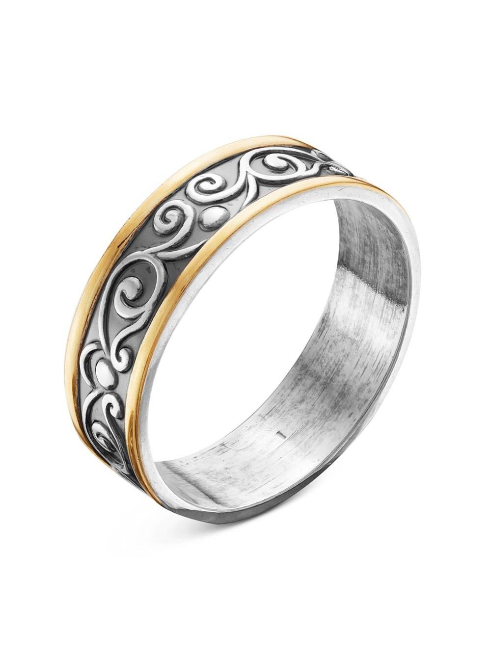 Кольцо бижутерия, покрытие - серебрение с оксидированием, выборочное золочение, без вставок