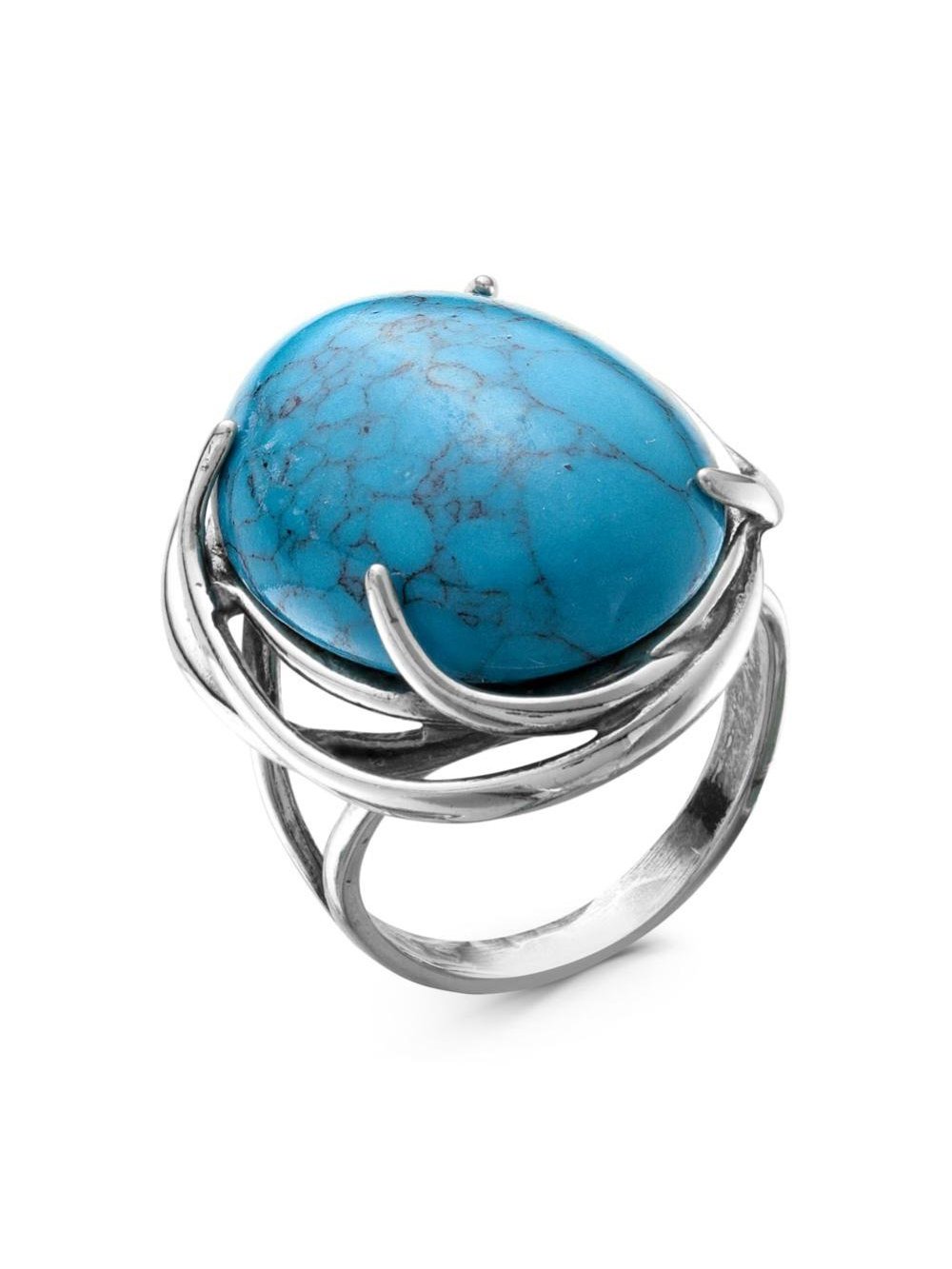 Кольцо бижутерия, покрытие - серебрение с оксидированием, вставка - искусственная бирюза