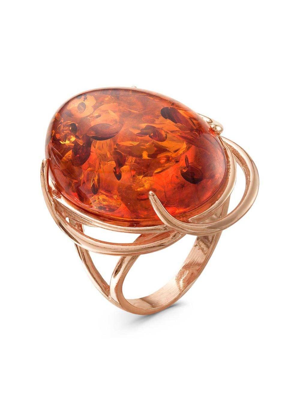 Кольцо бижутерия, покрытие - золочение, вставка - искусственный янтарь