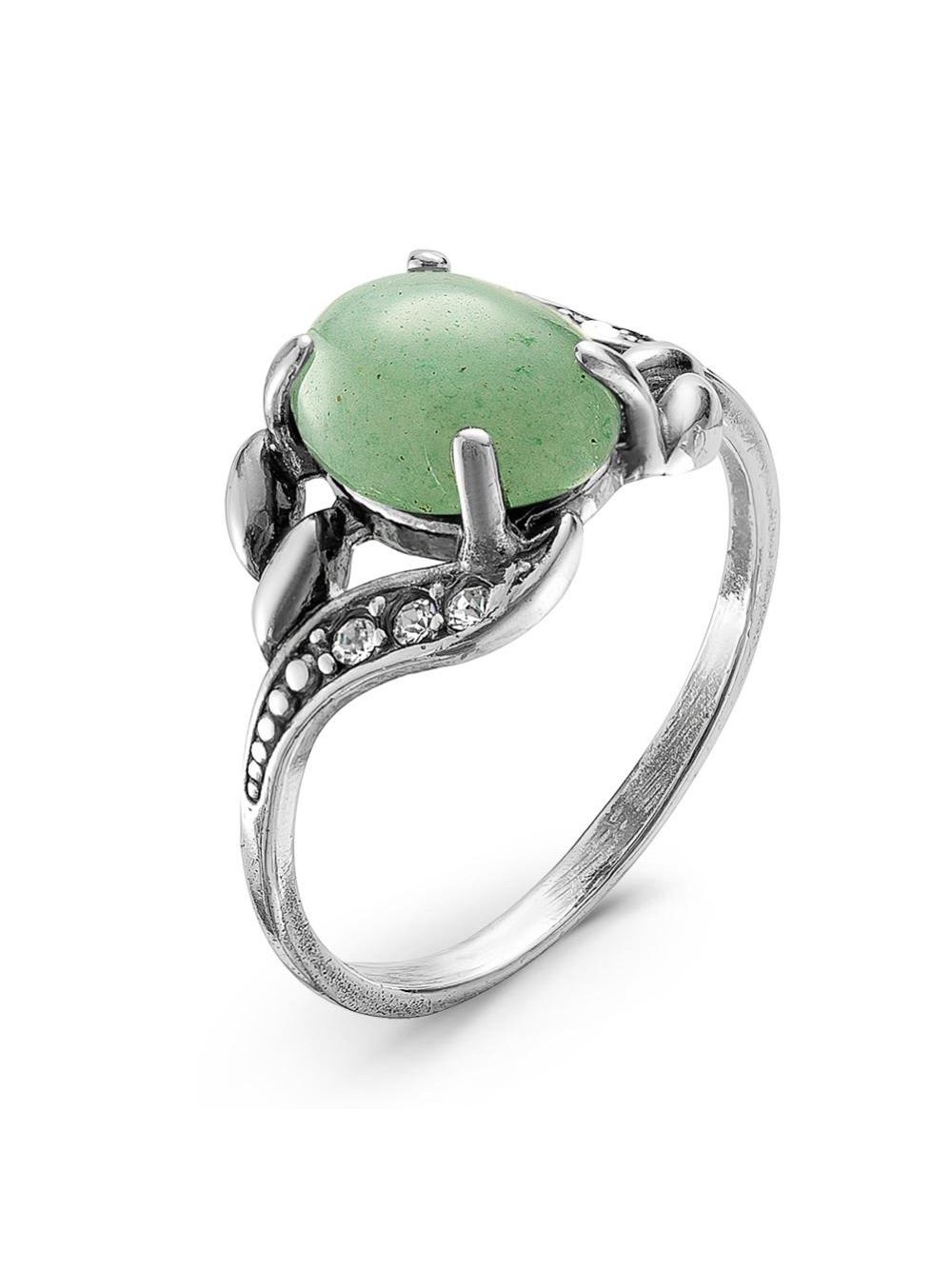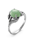 Кольцо бижутерия, покрытие - серебрение с оксидированием, вставка - искусственный нефрит , стекло ювелирное preciosa
