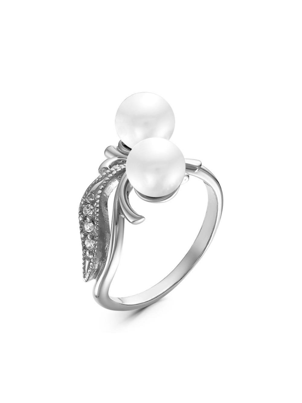 Кольцо бижутерия, покрытие - серебрение с оксидированием, вставка - культивированный жемчуг, стекло ювелирное preciosa