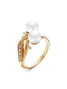 Кольцо бижутерия, покрытие - золочение, вставка - культивированный жемчуг, стекло ювелирное preciosa