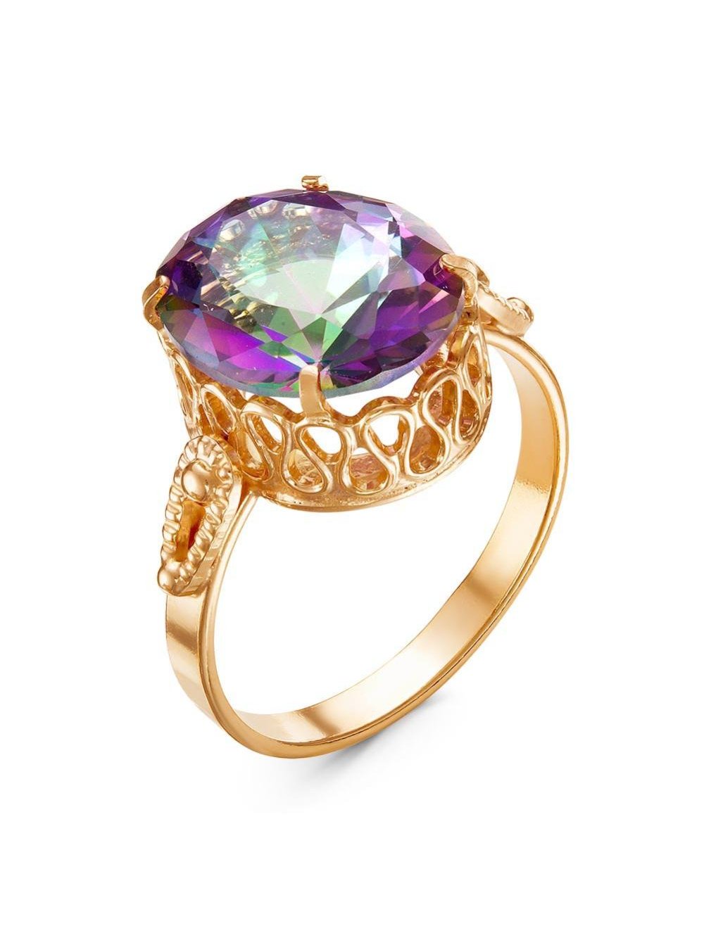 Кольцо бижутерия, покрытие - золочение, вставка - стекло ювелирное