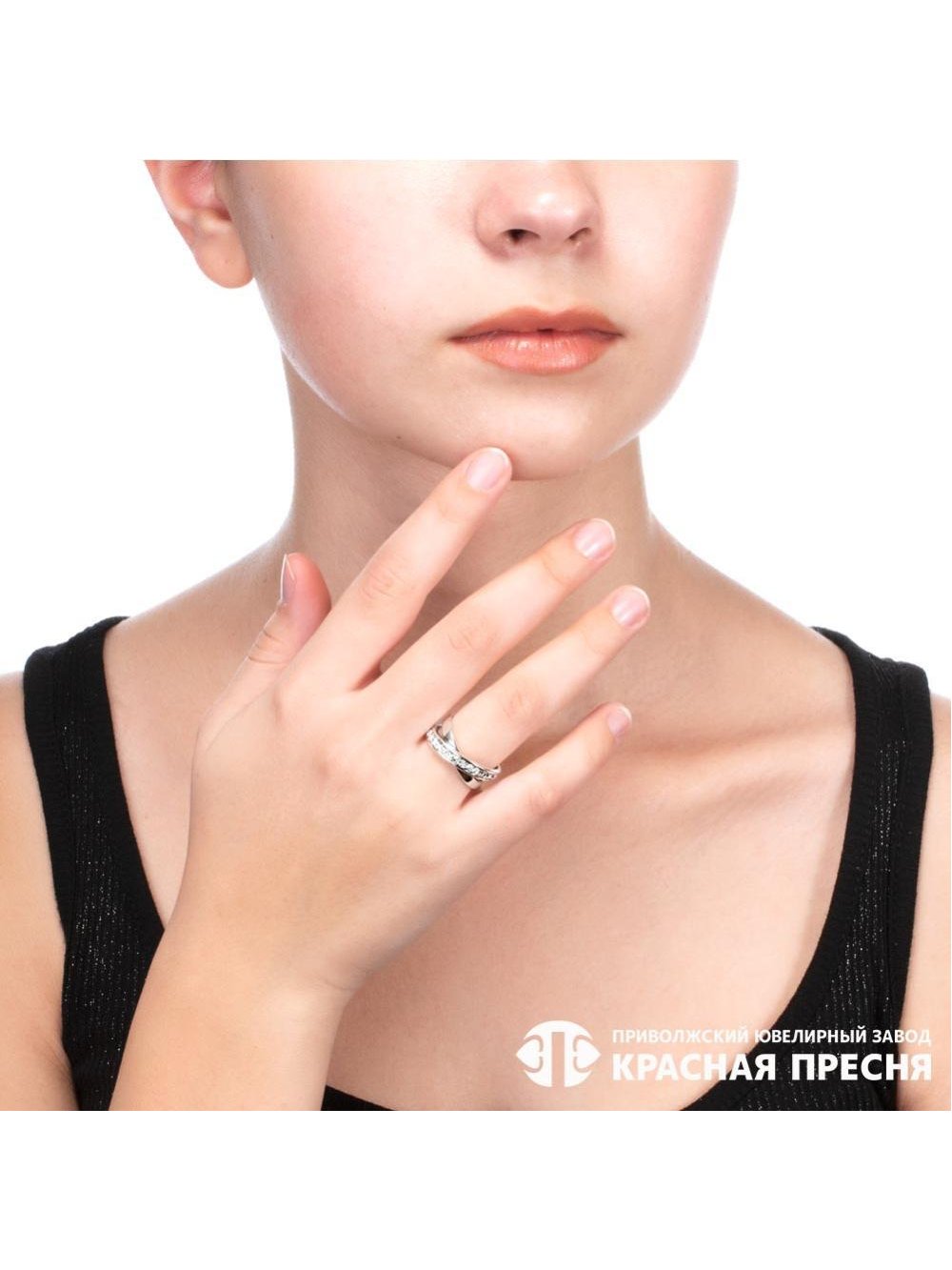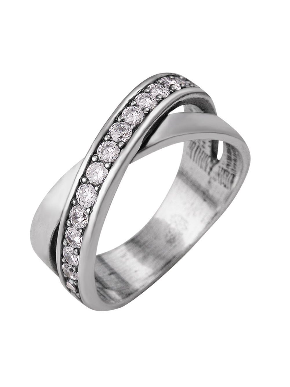 Кольцо бижутерия, покрытие - серебрение с оксидированием, вставка - стекло ювелирное preciosa