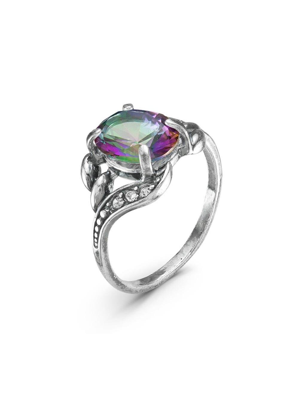 Кольцо бижутерия, покрытие - серебрение с оксидированием, вставка - стекло ювелирное, стекло ювелирное preciosa