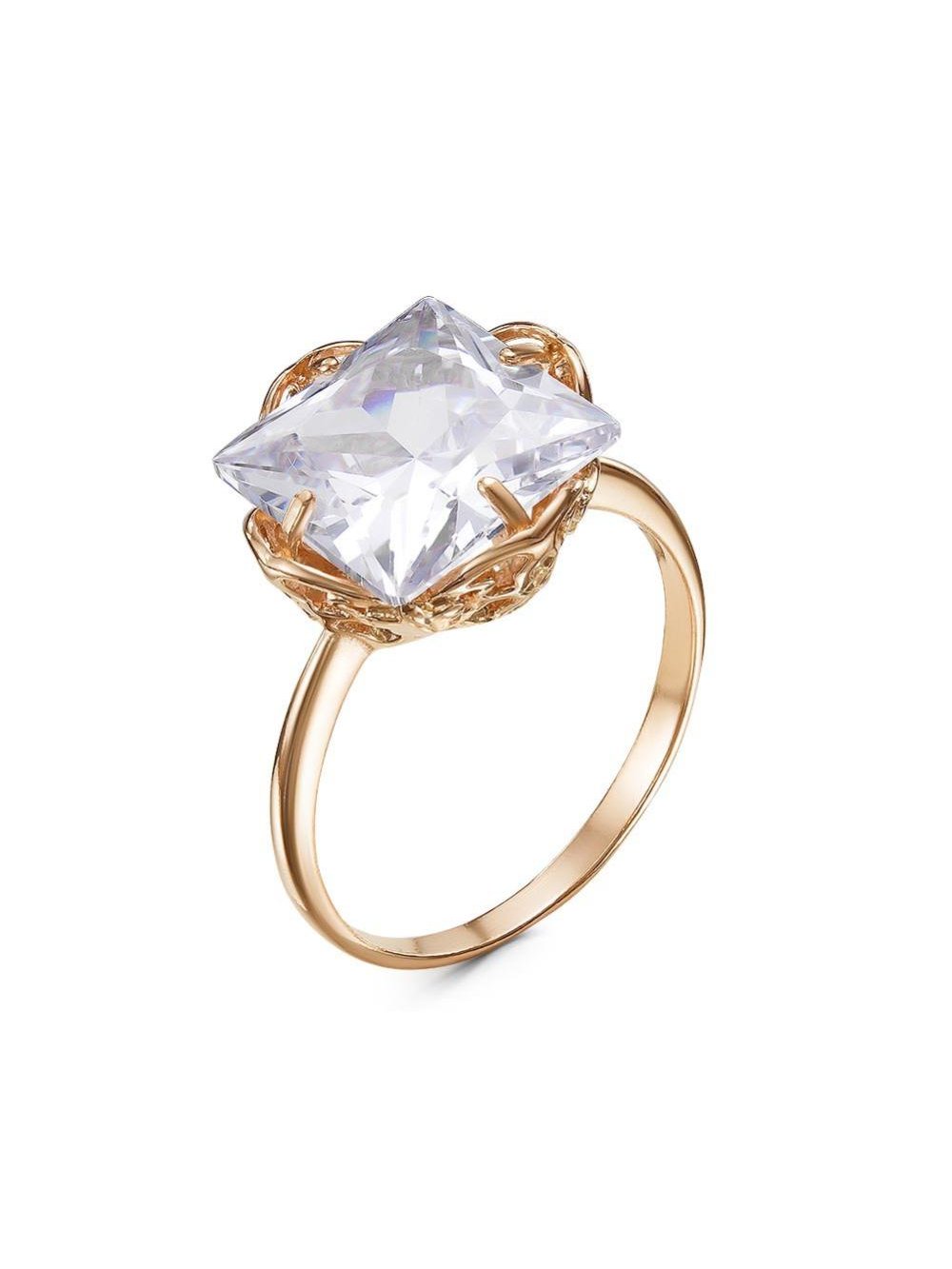 Кольцо бижутерия, покрытие - золочение, вставка - фианит (недрагоценный камень)